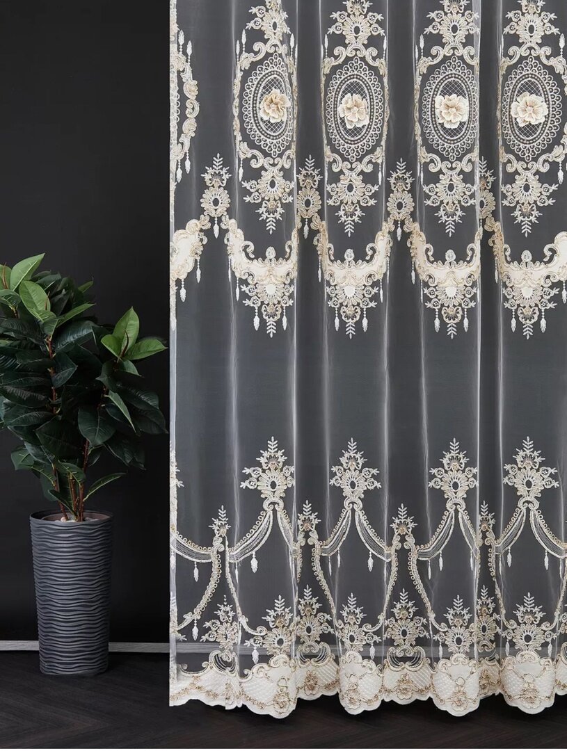 Готовый тюль, ширина 300см-высота 240см с вышивкой, для спальни, гостиной, кабинета, кухни, детской 5 700 ₽