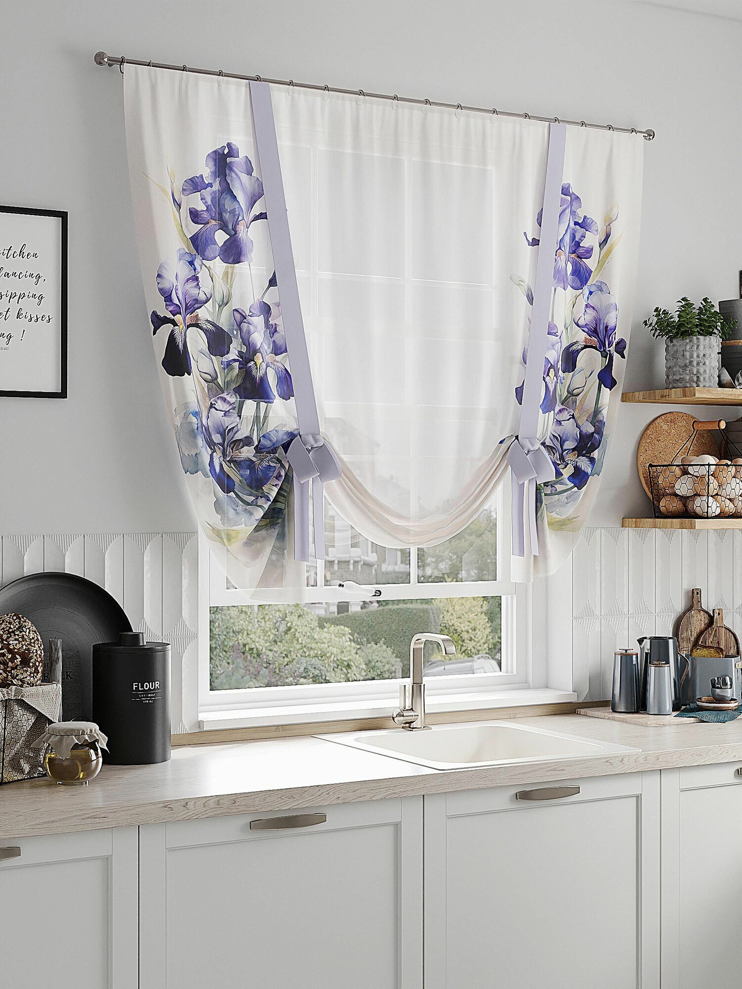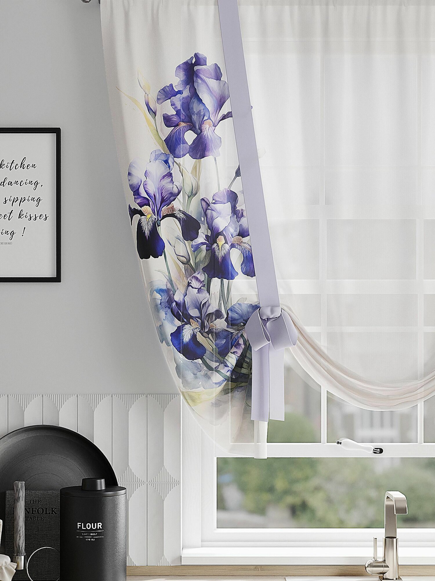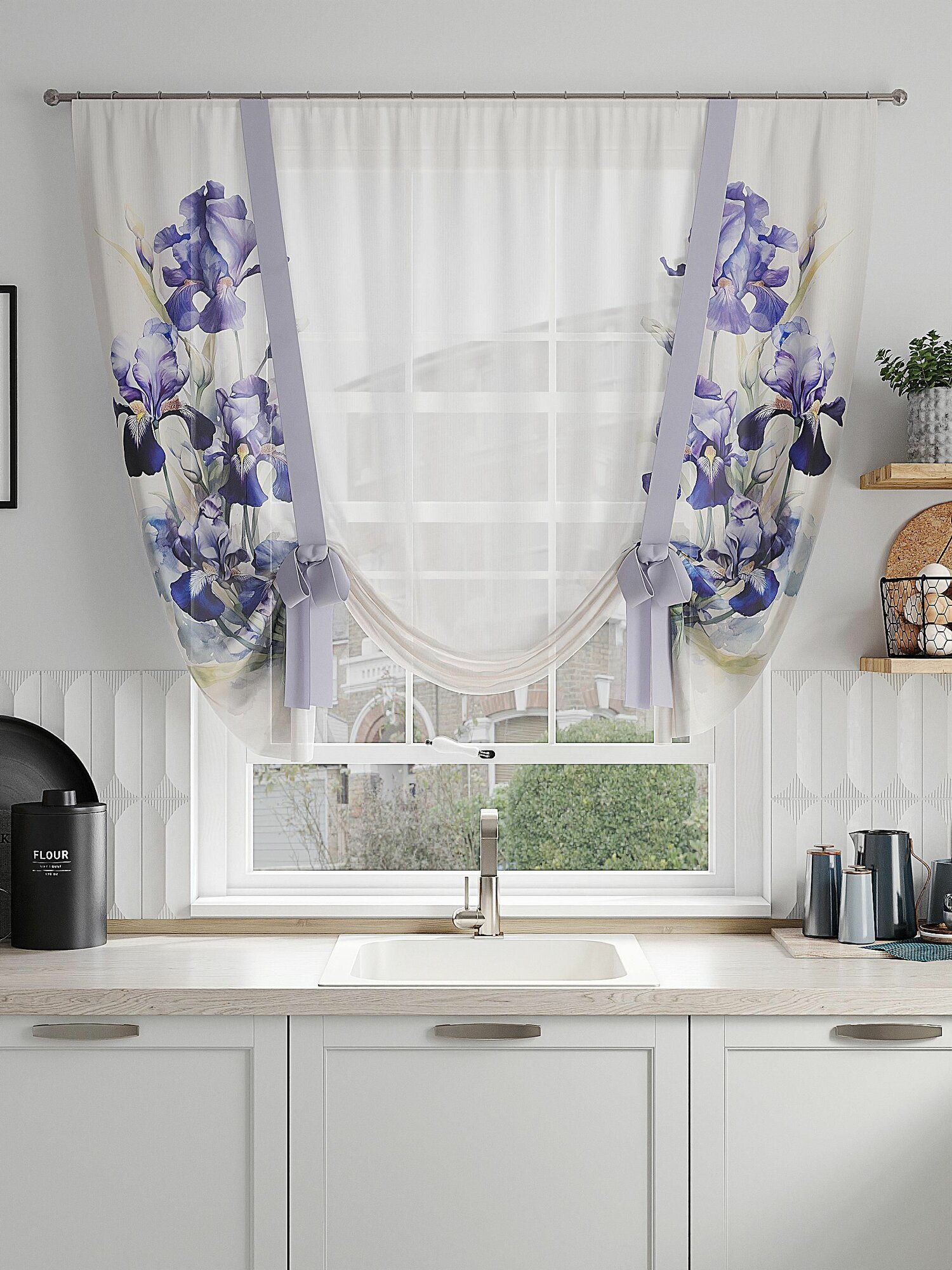 Шторы в кухню / Тюль для кухни с лентами Comfy Way 150х150 см 1 шт / Ирисы информация: