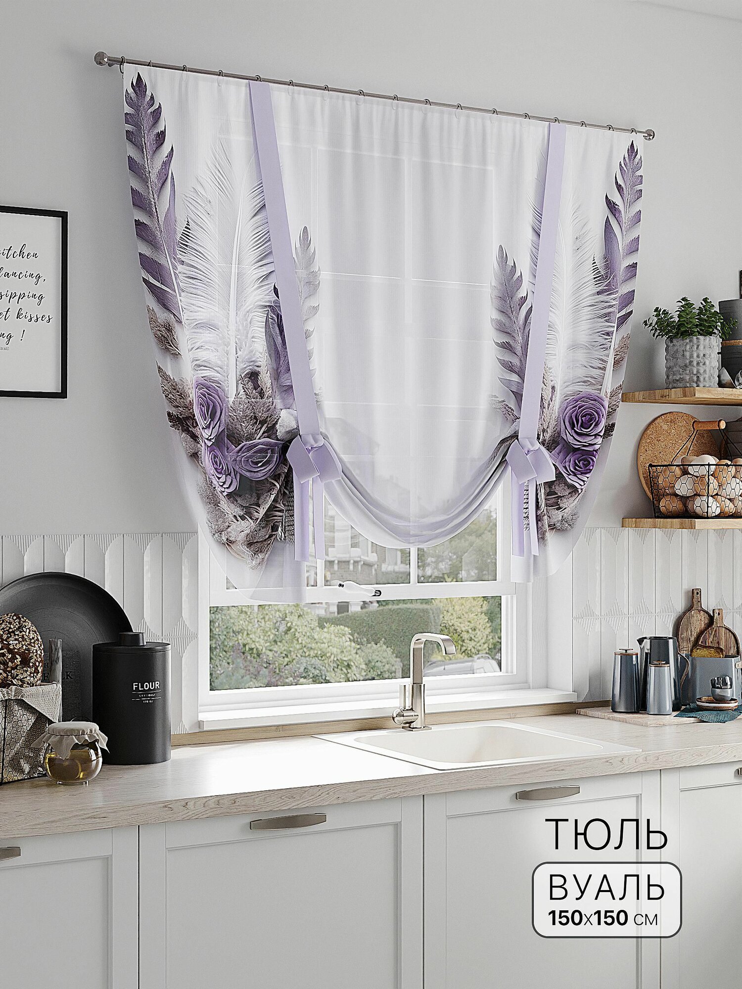 Шторы в кухню / Тюль для кухни с лентами Comfy Way 150х150 см 1 шт / Филорана информация: