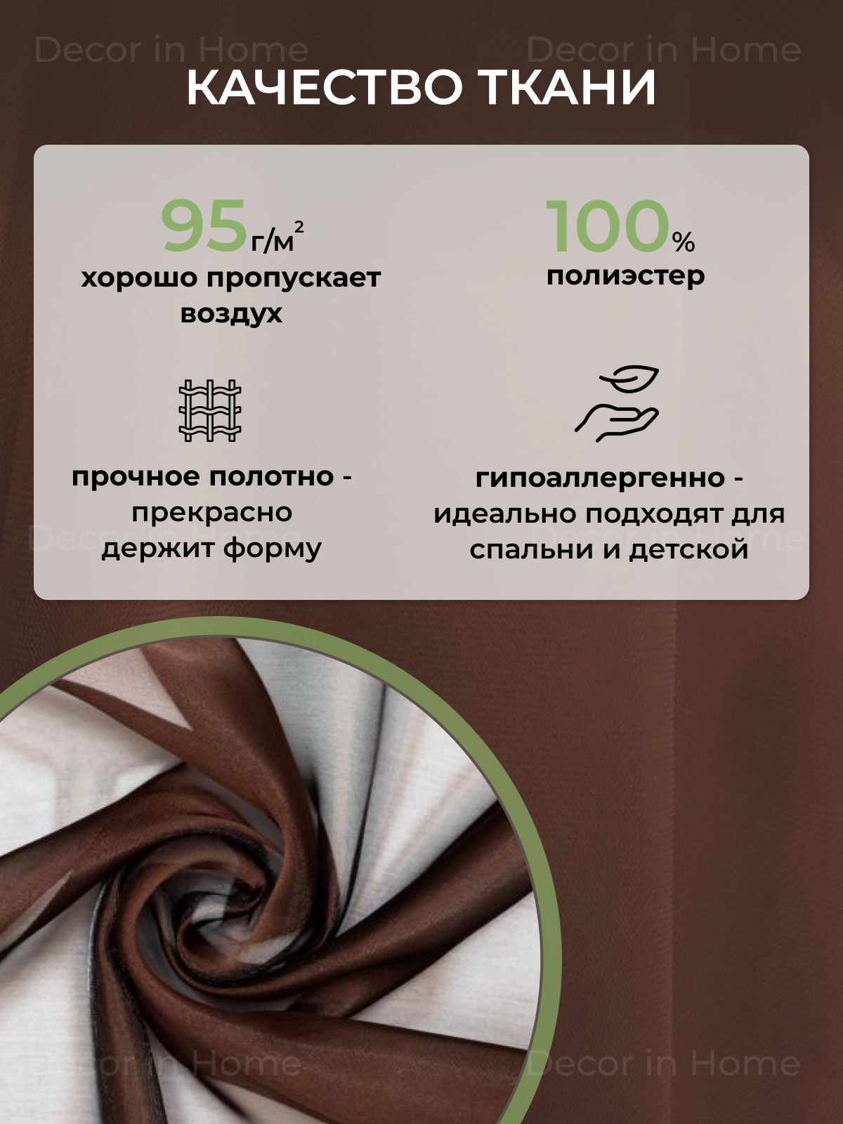 Отзывы на Тюль-Вуаль "DECOR in Home" комплект из 2 шт, шоколад, ширина 500 см высота 270