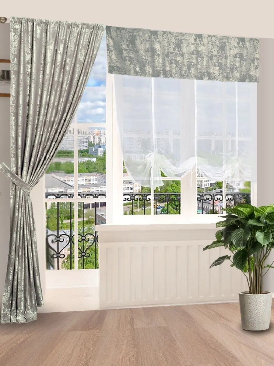 Шторы для балконной двери с окном для кухни и комнаты "Галант Шторы" 2 шт, жаккард/вуаль, подхваты, мрамор, серый 2 338 ₽