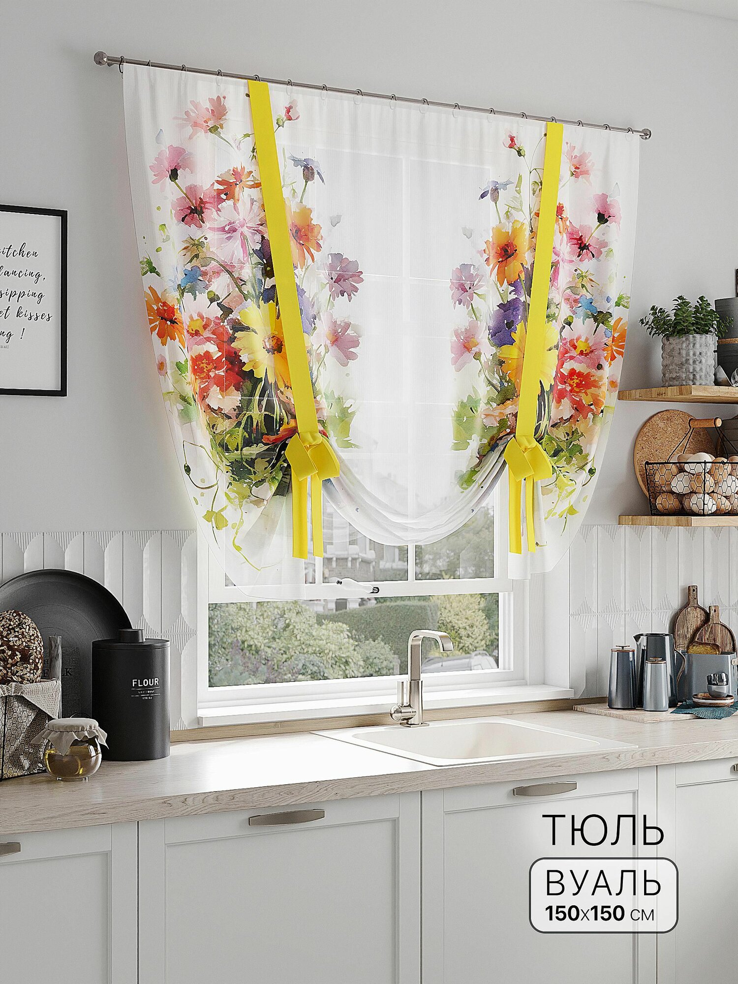 Шторы в кухню / Тюль для кухни с лентами Comfy Way 150х150 см 1 шт / Онуара информация: