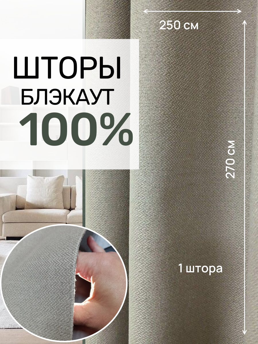 Шторы блэкаут 100% затемнения, Твид бежевого цвета , 250 см * 270 см. информация: