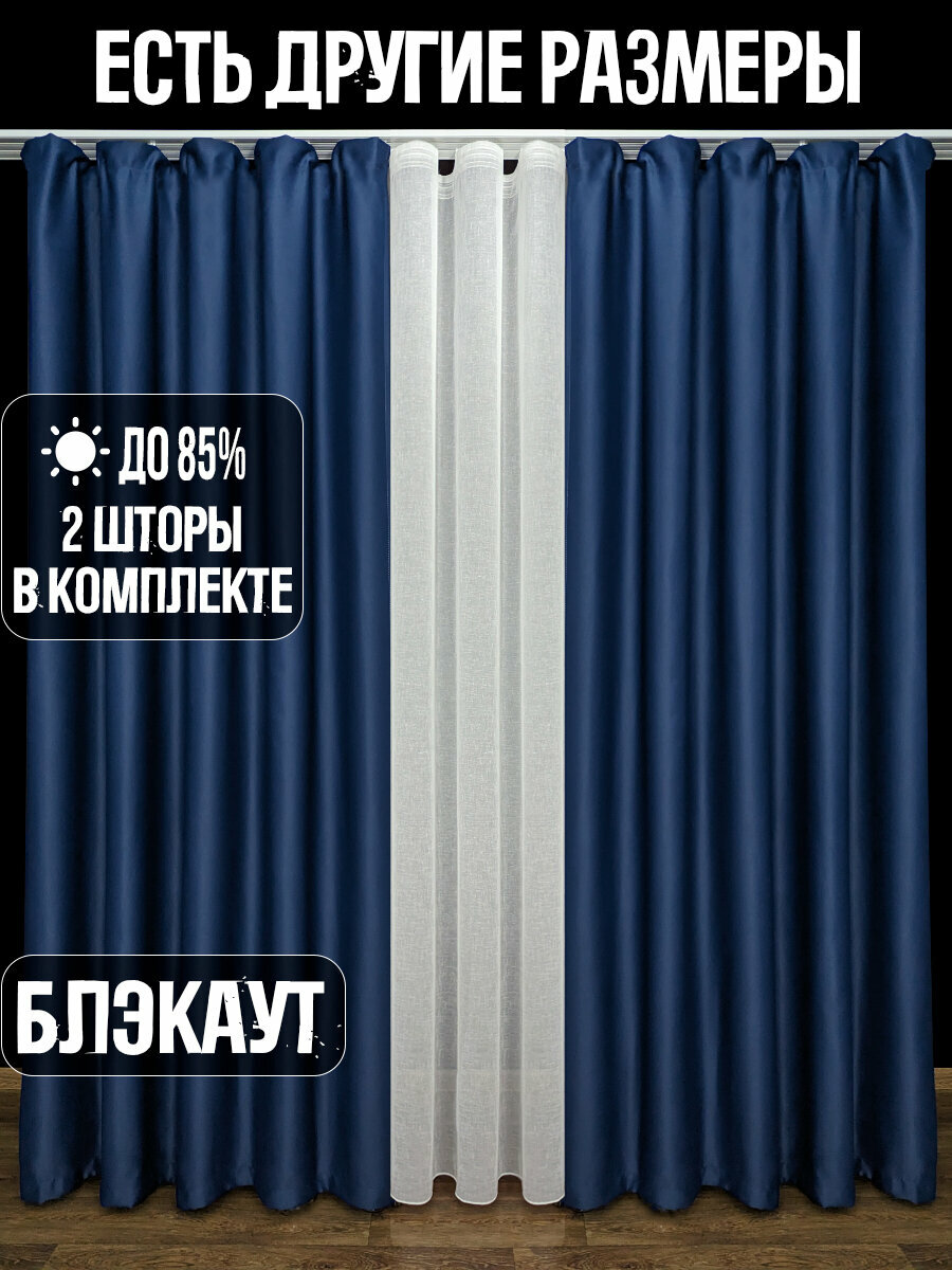 Готовый комплект плотных интерьерных штор(портьер) блэкаут (blackout) без рисунка (2 шт, каждая штора 150x260 см) со шторной лентой 3 275 ₽