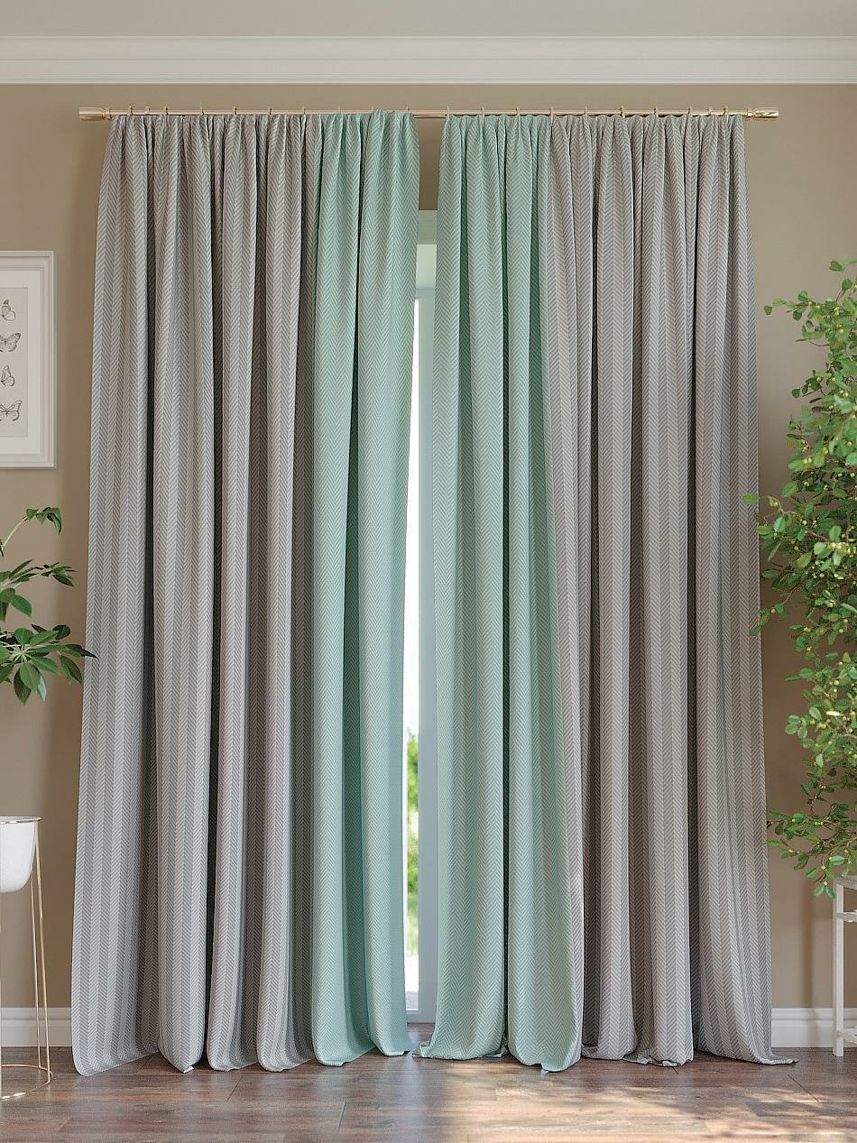 10 цен на Комплекты штор AT HOME Крисби (серо-бирюзовый) высота 280 см, ширина 220 см, крепление - шторная лента, Серый/черный