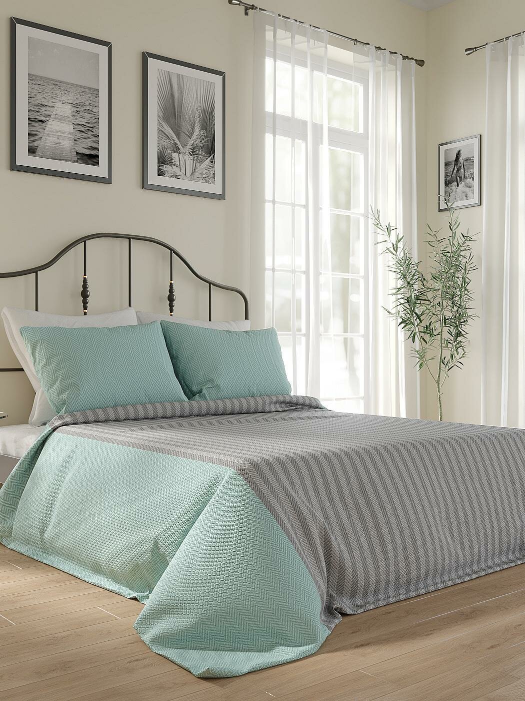Отзывы на Комплекты штор AT HOME Крисби (серо-бирюзовый) высота 280 см, ширина 220 см, крепление - шторная лента, Серый/черный