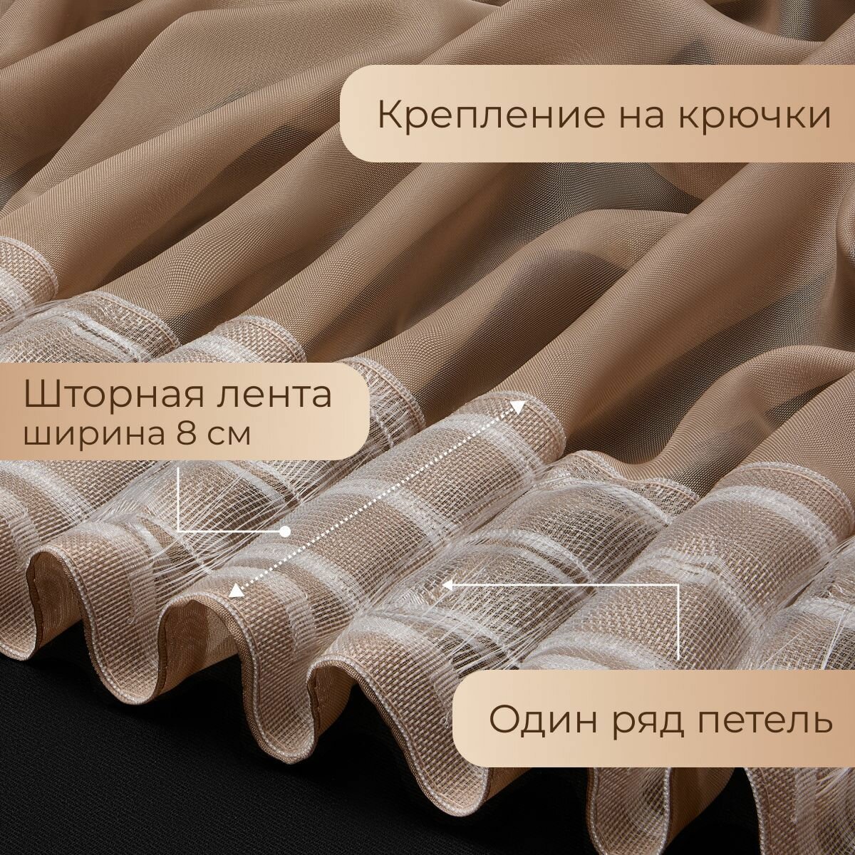 Тюль вуаль VEO 300x280 в спальню, гостиную, детскую, кухню, какао 957 ₽