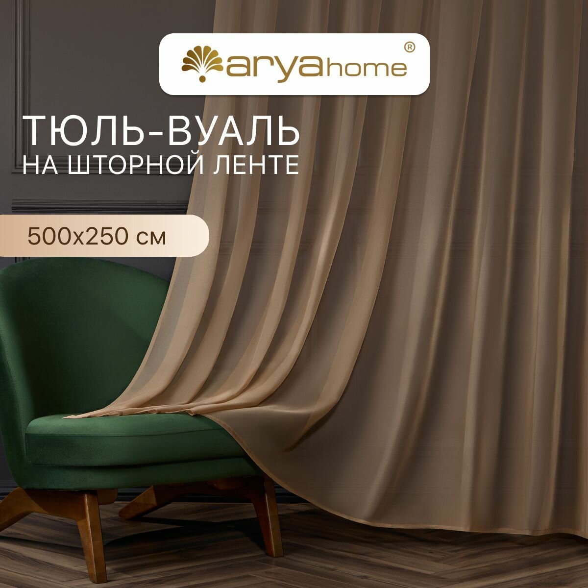 Тюль вуаль Arya VEO 500x250 в спальню, гостиную, детскую комнату, на кухню, в зал темно-бежевый 1 658 ₽