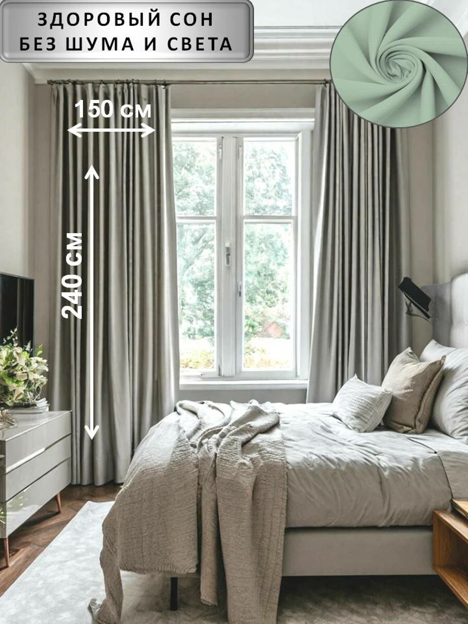 Шторы Блэкаут 150х240, однотонные, светонепроницаемые, 1 портьера, светло-серый с зеленоватым оттенком информация: