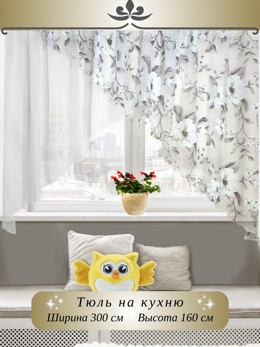 Отзывы на Тюль короткий 300х160 уголок арка органза вуаль на кухню и в комнату