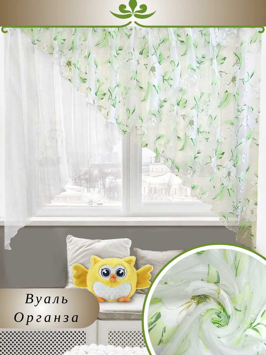 Отзывы на Тюль короткий на кухню 300х160 уголок арка органза вуаль в комнату