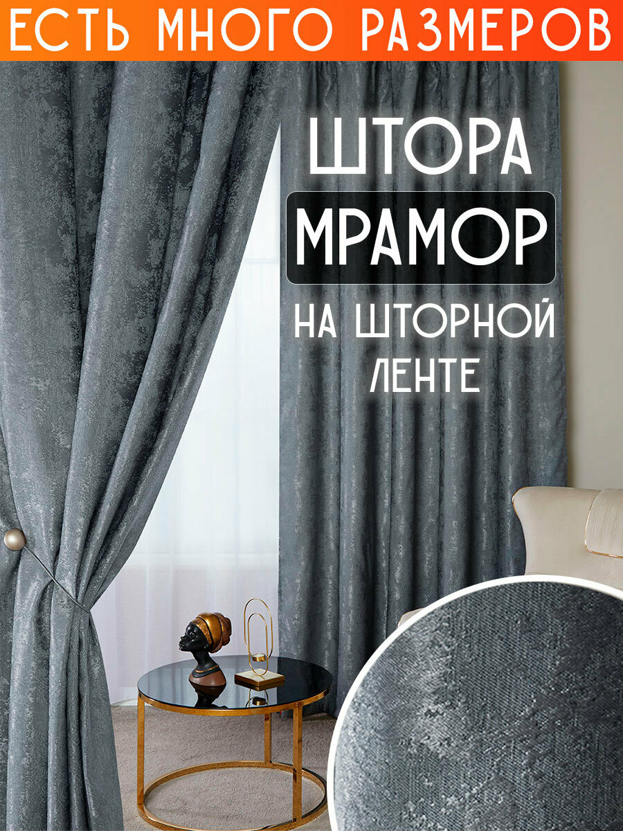 Отзывы на Готовая плотная интерьерная штора(портьера) софт мрамор 250x270 см.(1шт.) темно-серый
