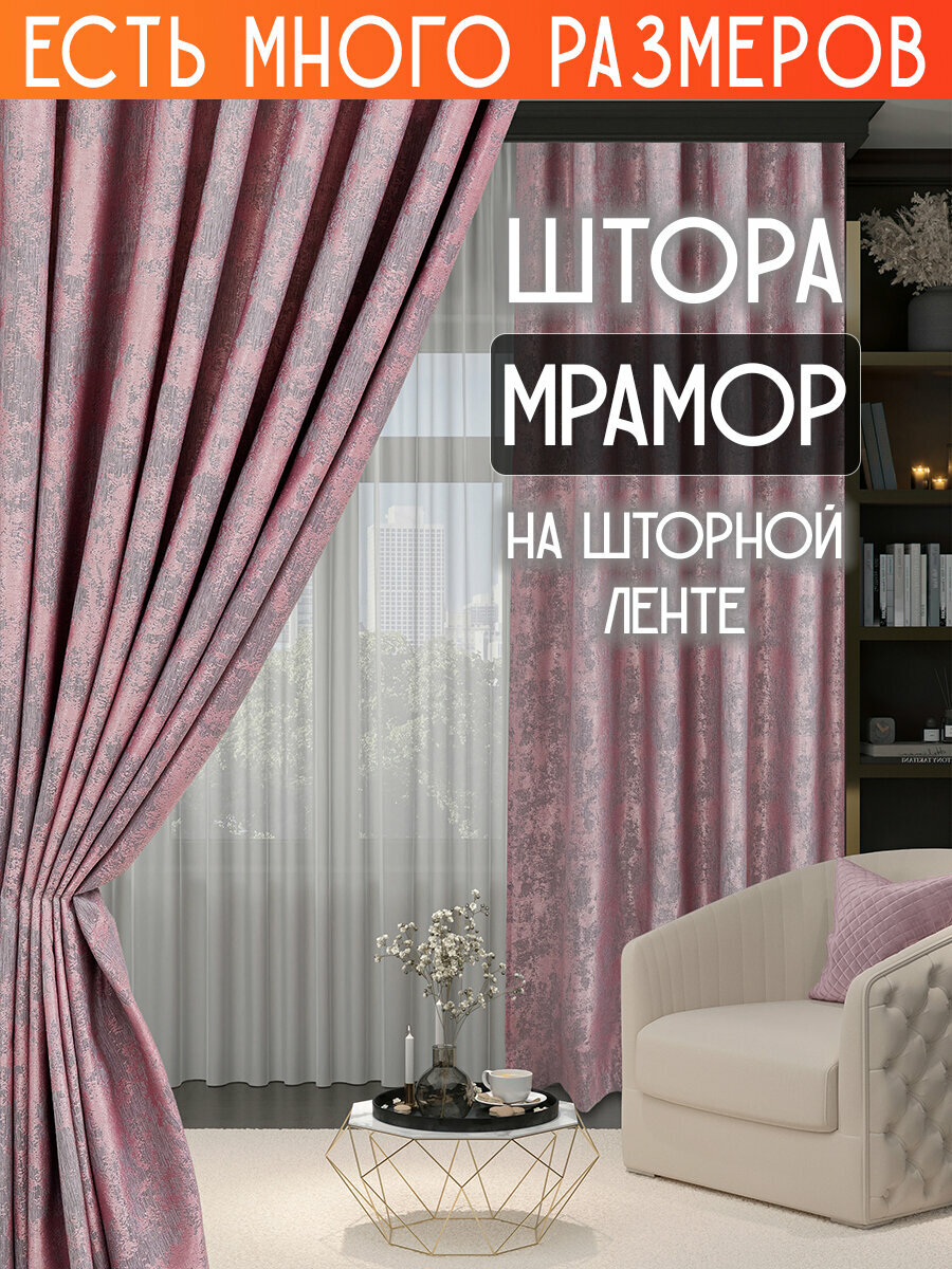 Отзывы на Готовая плотная интерьерная штора(портьера) софт мрамор 250x240 см.(1шт.) розовый