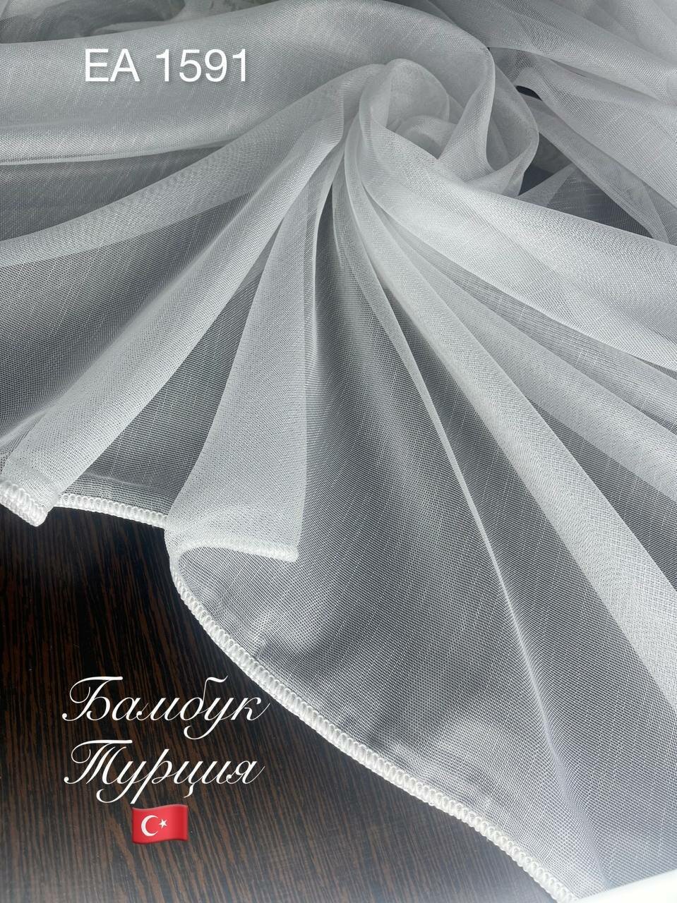 Тюль Бамбук с утяжелителем, Белый, Турция, Отрез от 1 метра информация: