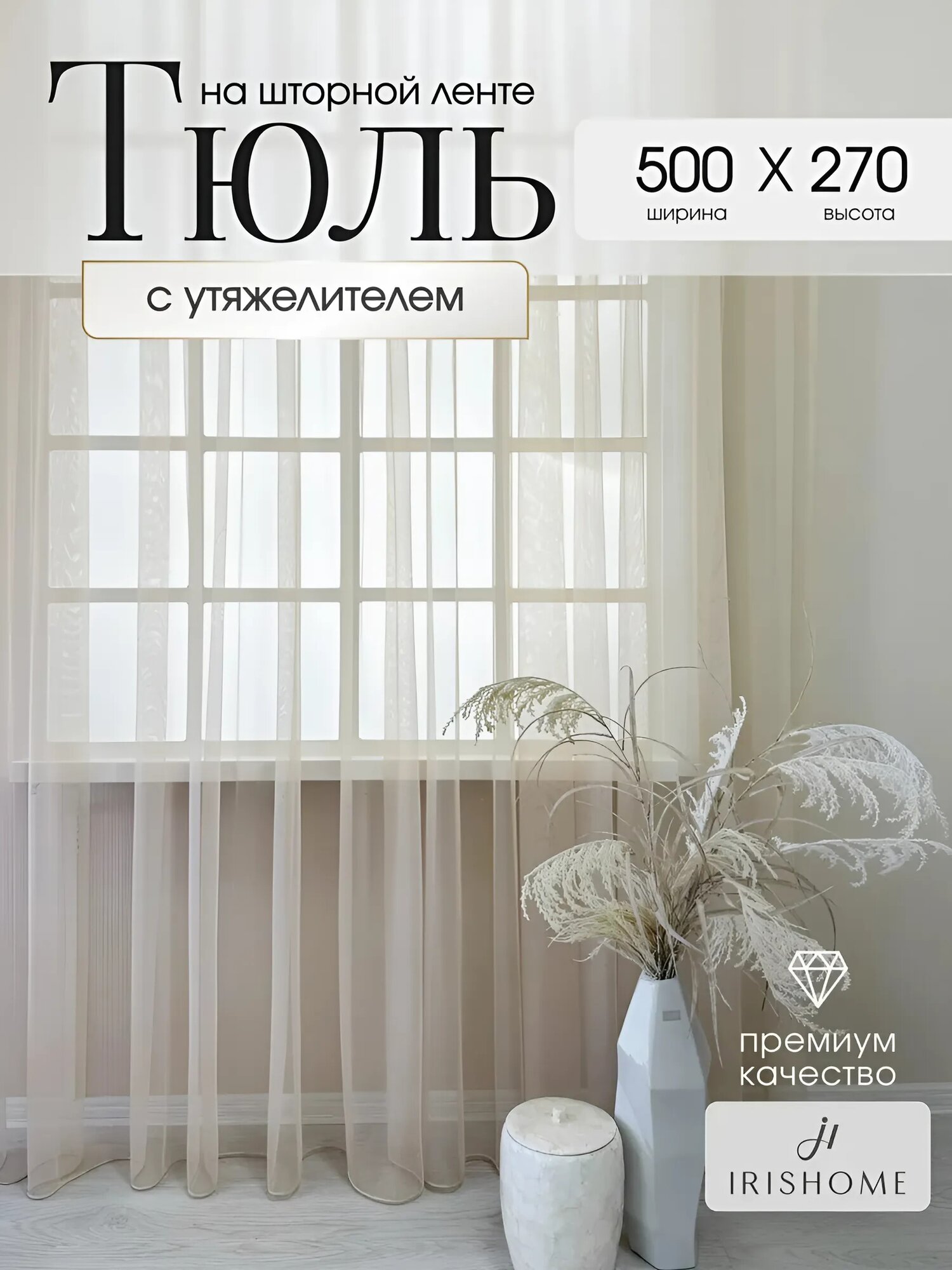 Отзывы на Тюль в гостиную спальню 500x270 см IRISHOME, бежевая, воздушная сетка