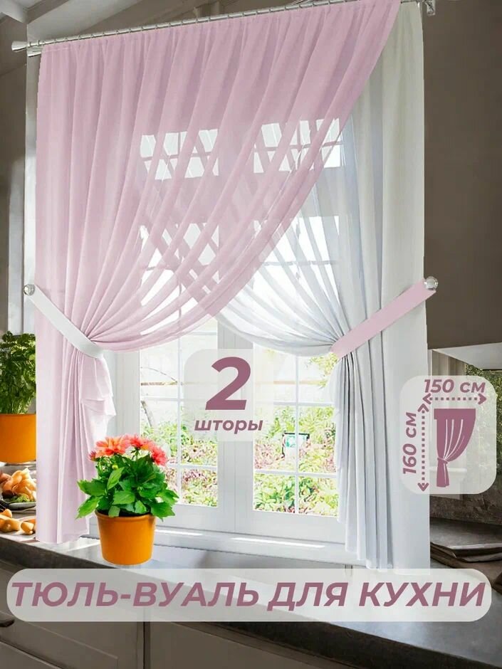 Отзывы на Тюль-вуаль для кухни ширина 150 см. высота 160 см. - 2 шт. + 2 подхвата