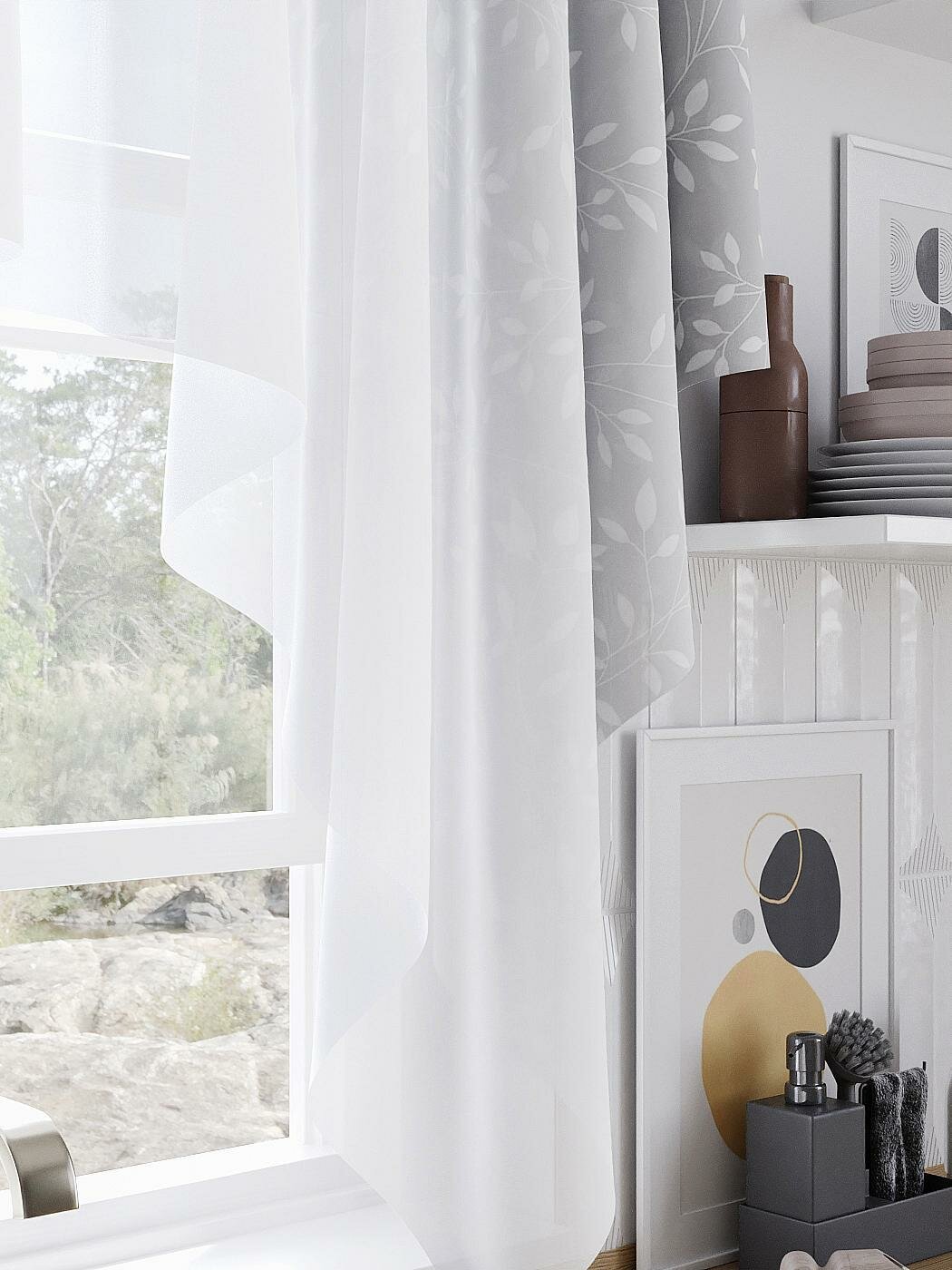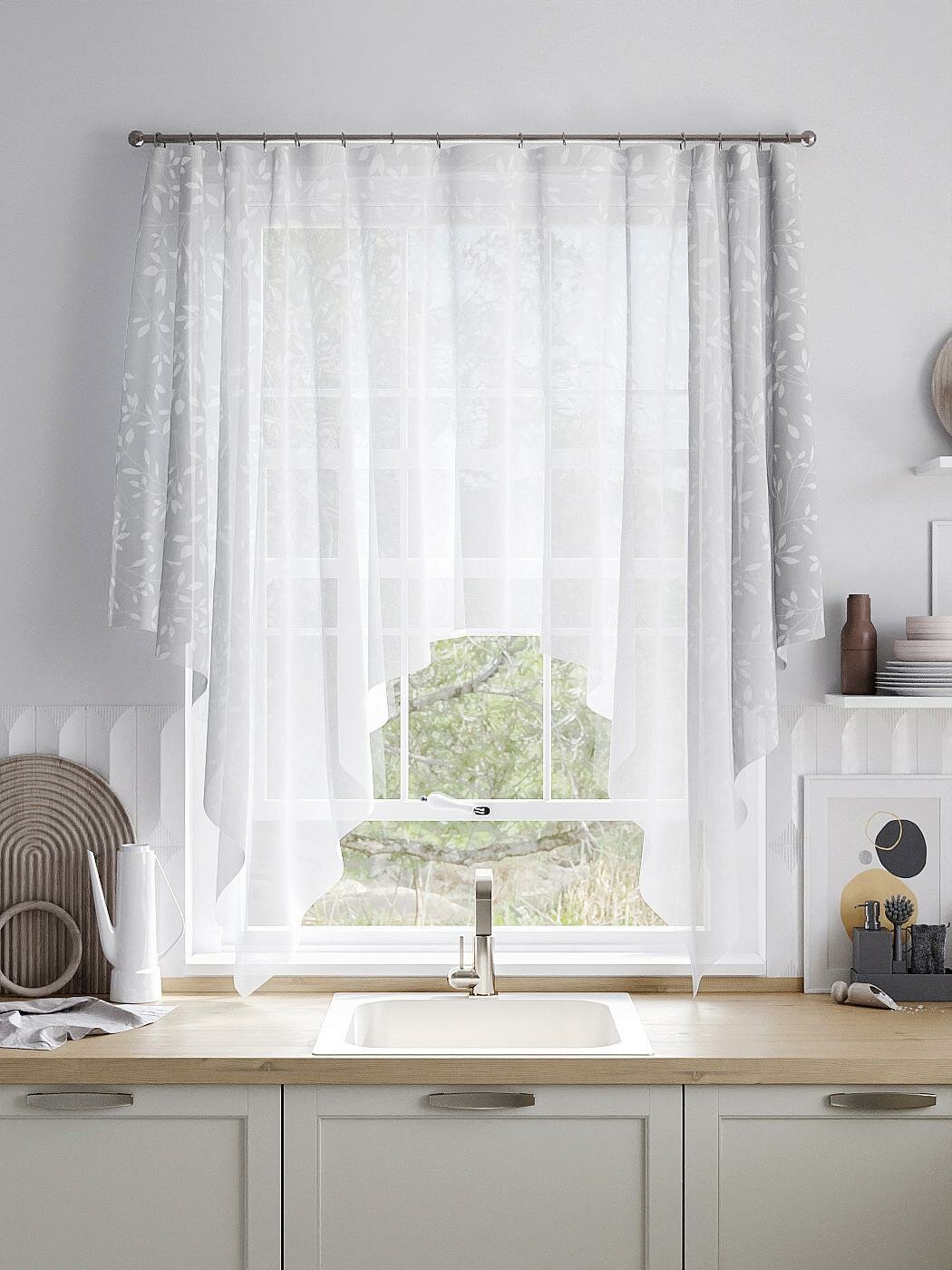 Тюль GERGER на шторной ленте с вышивкой 200х240, 1 шт, белый