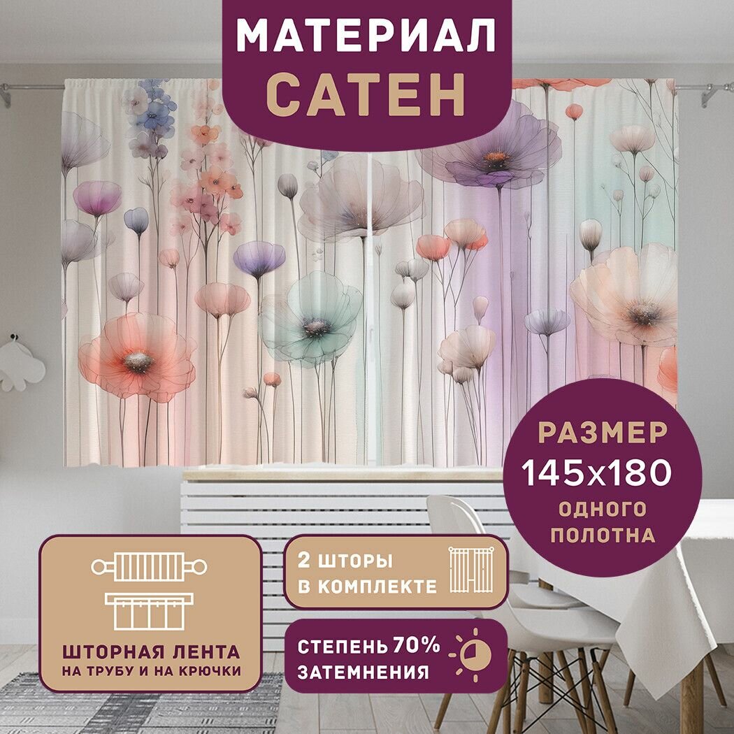 Фотошторы для кухни и спальни "Акварельные цветы", 2 полотна шириной по 145 см, высота 180 см информация: