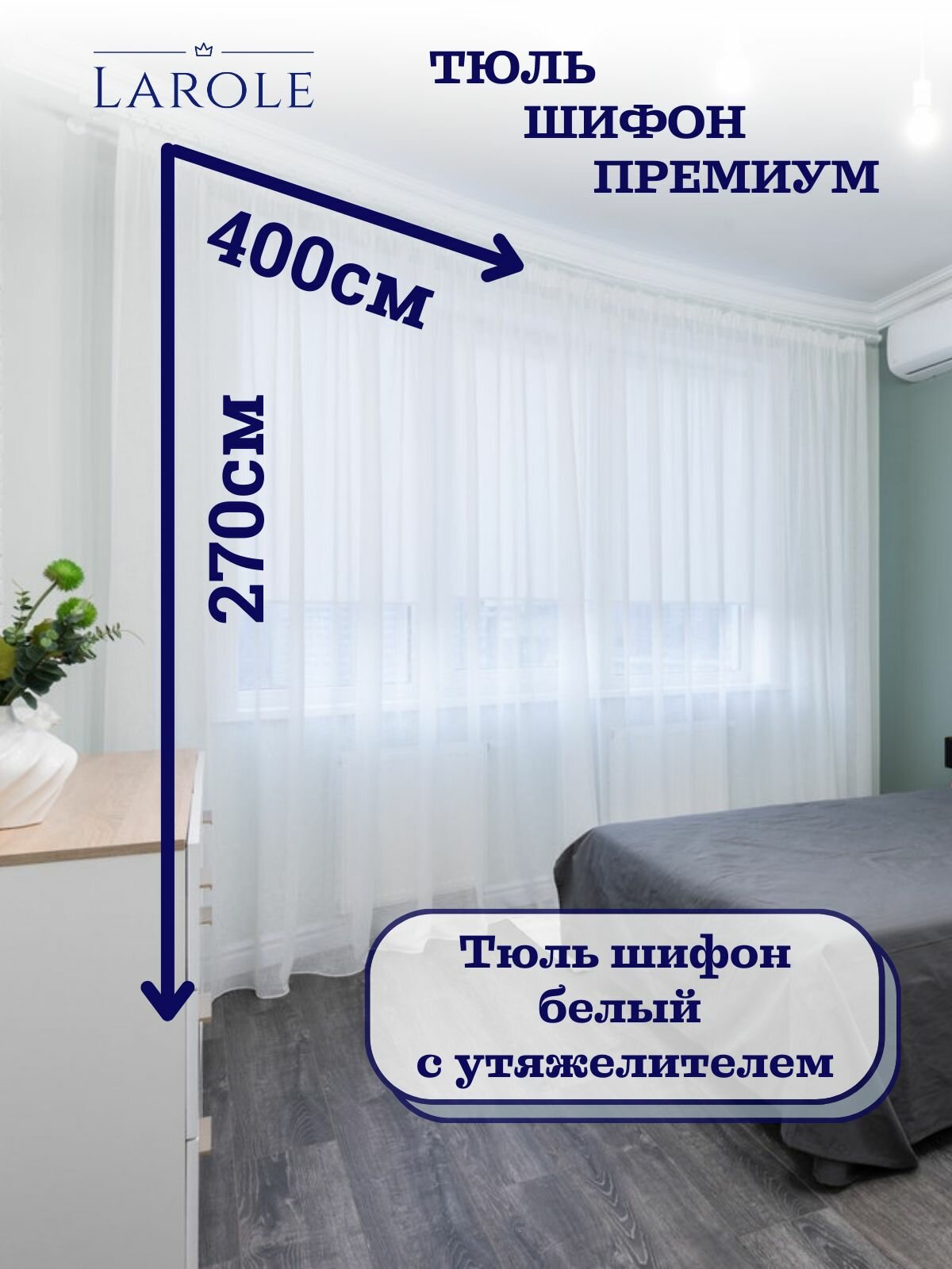 Тюль для гостиной и спальни в современном стиле шифон теплый белый 400см на 270см матовый с утяжелителем информация: