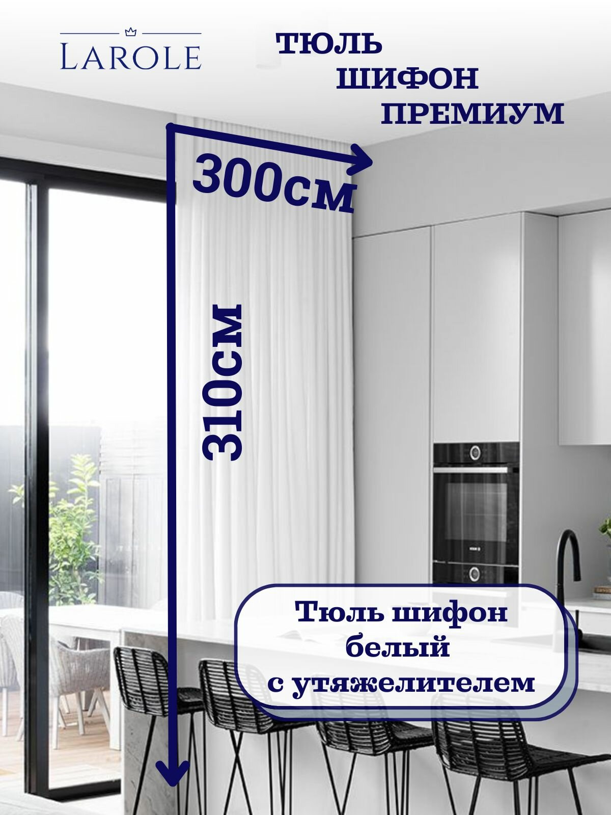 Тюль для гостиной и спальни в современном стиле шифон теплый белый 300см на 310см матовый с утяжелителем информация:
