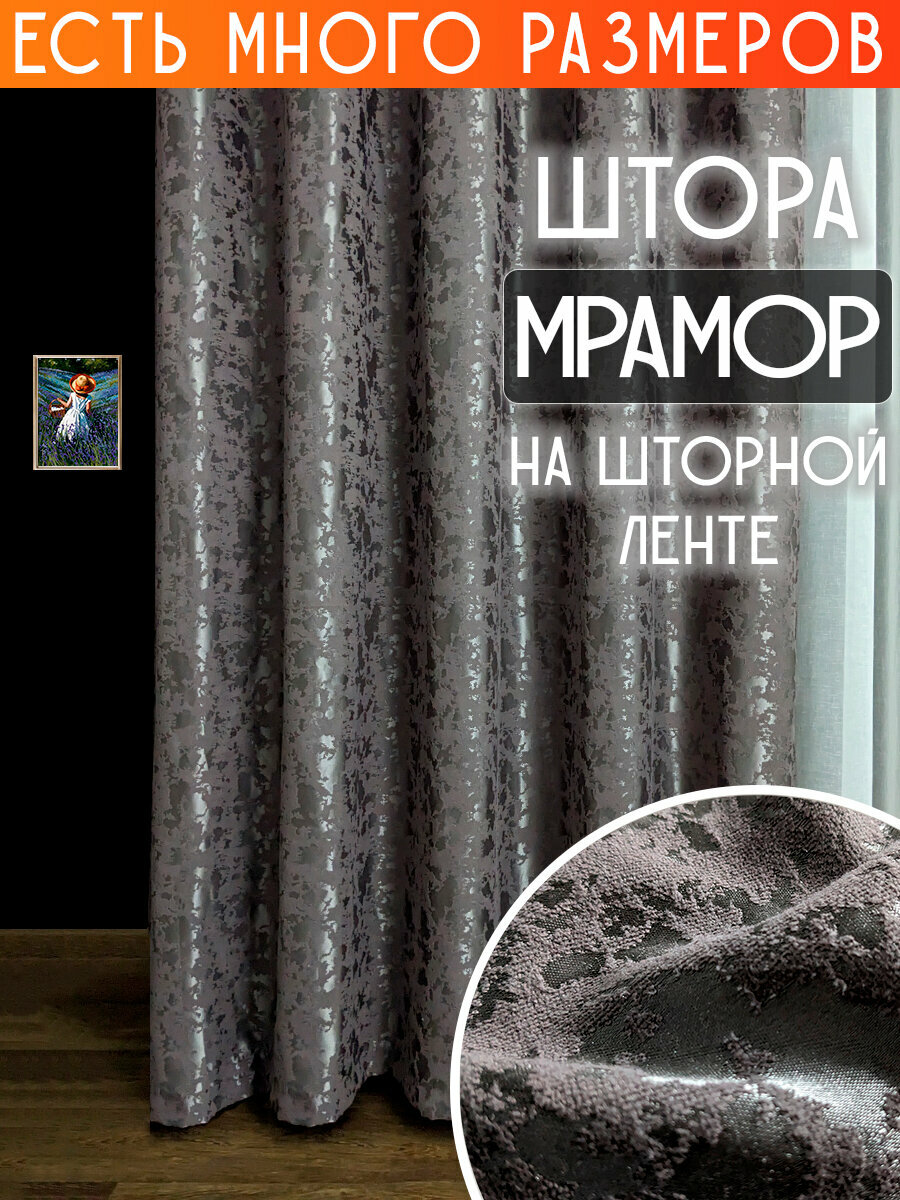 Отзывы на Готовая плотная интерьерная штора(портьера) с рисунком мрамор 350x240 см.(1шт.) со шторной лентой