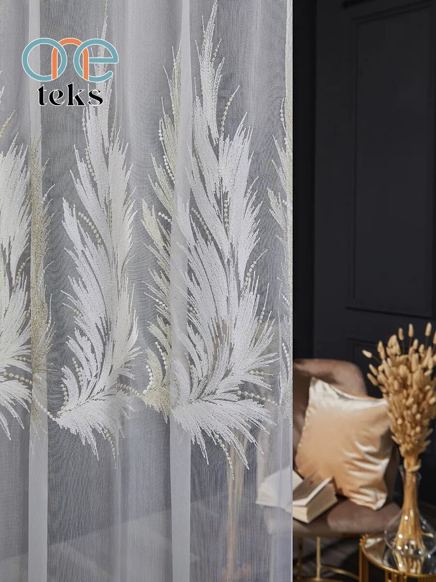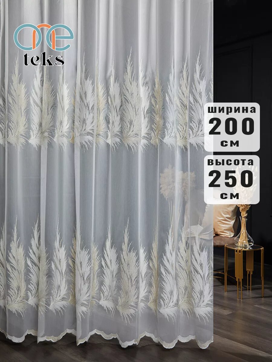 Тюль бамбук с вышивкой перья 200x250 информация:
