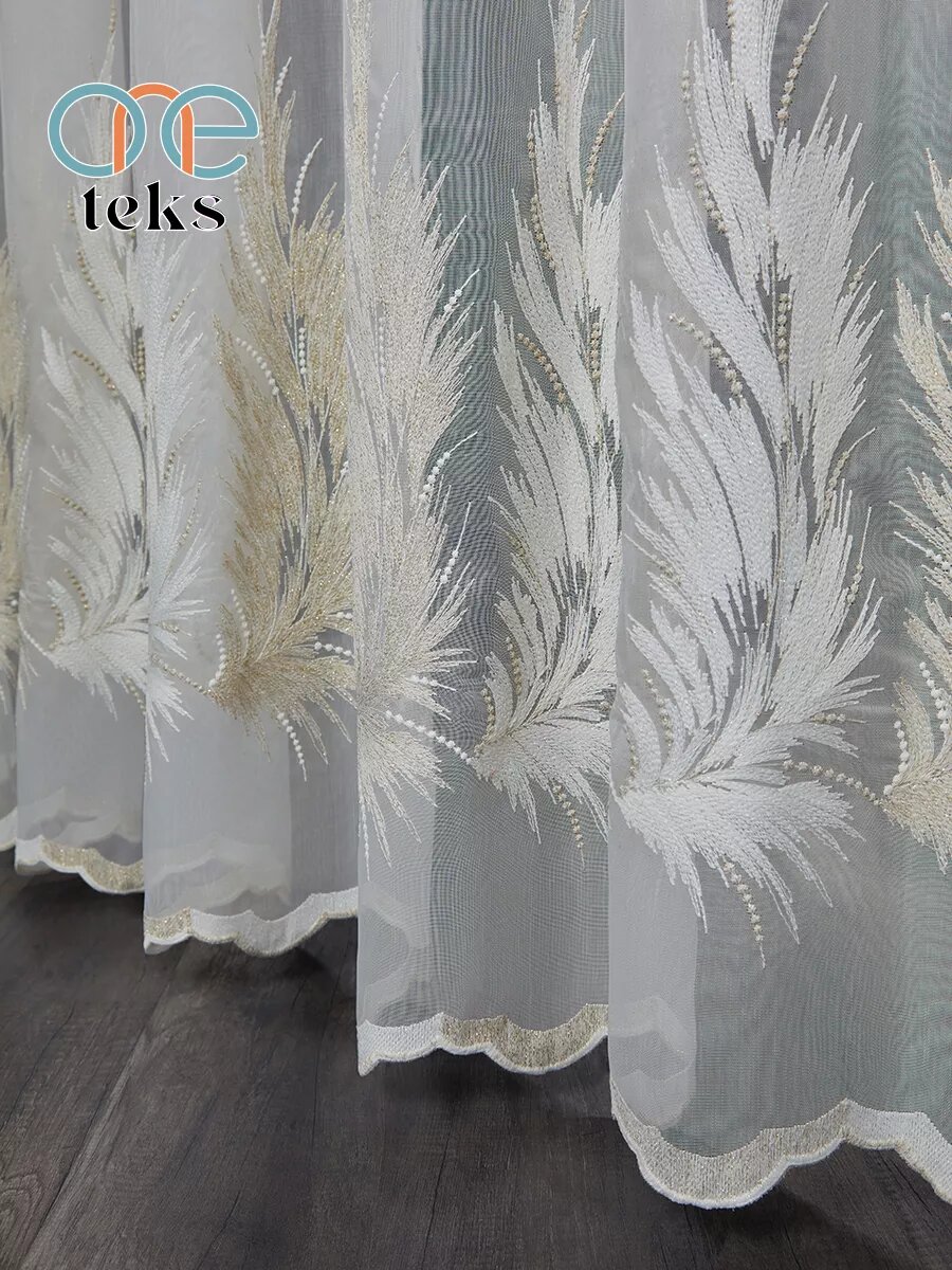 10 цен на Тюль бамбук с вышивкой перья 200x250