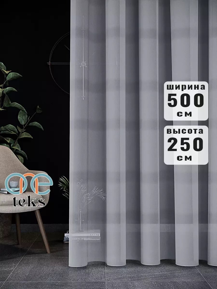 Готовый тюль 500х250 см с рисунком под лен для спальни и гостиной, вуаль для комнаты с утяжелителем 5 м