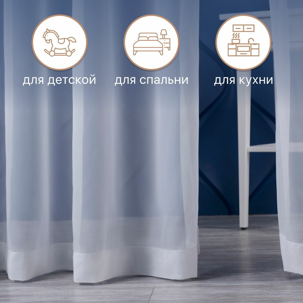 Тюль вуаль в спальню и гостиную длинная 200х240 см белая