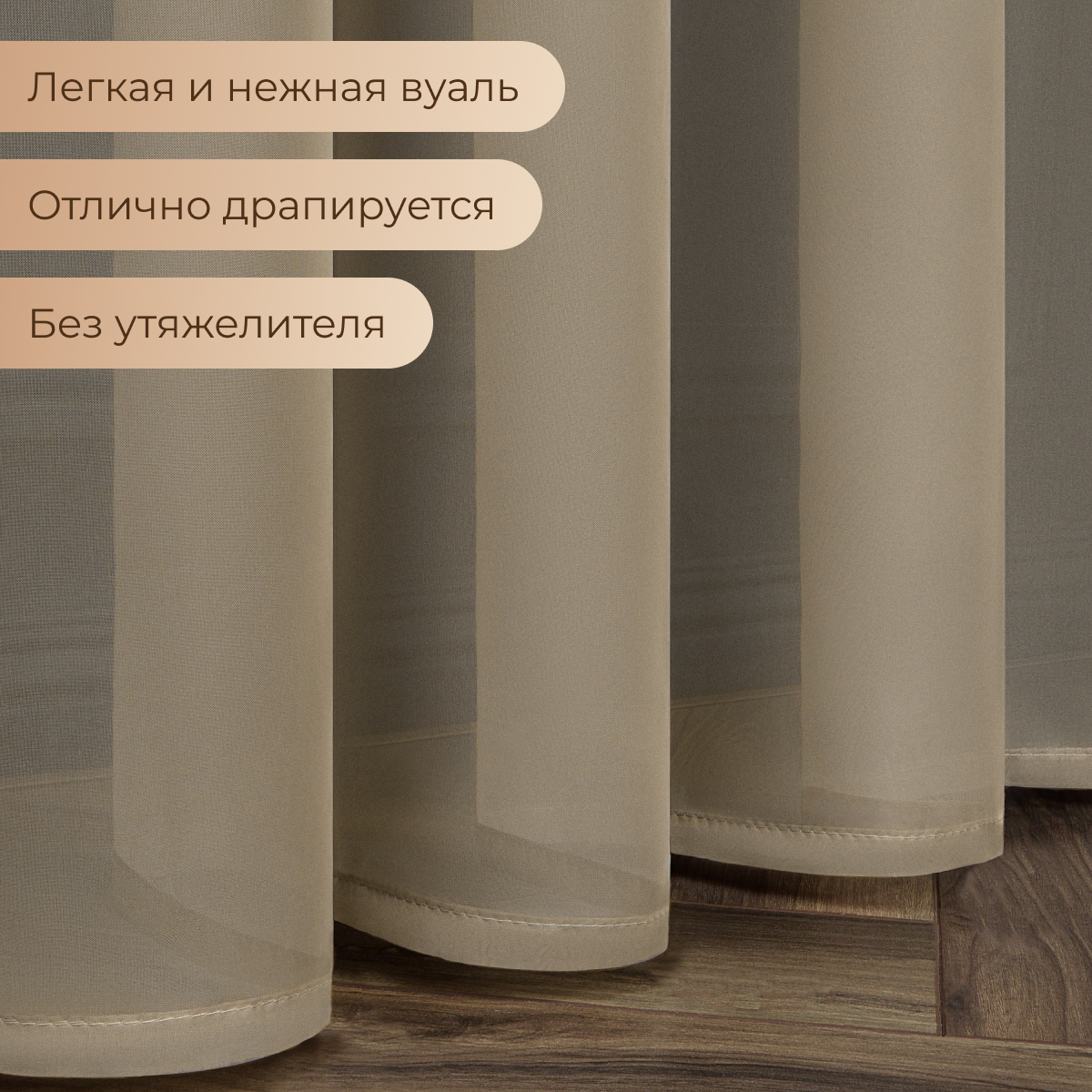 Отзывы на Тюль вуаль VEO 300x280 в спальню, гостиную, детскую, кухню бежевый