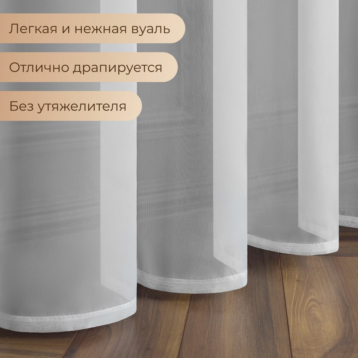 Тюль вуаль VEO 300x280 в спальню, гостиную, детскую, кухню молочный 997 ₽