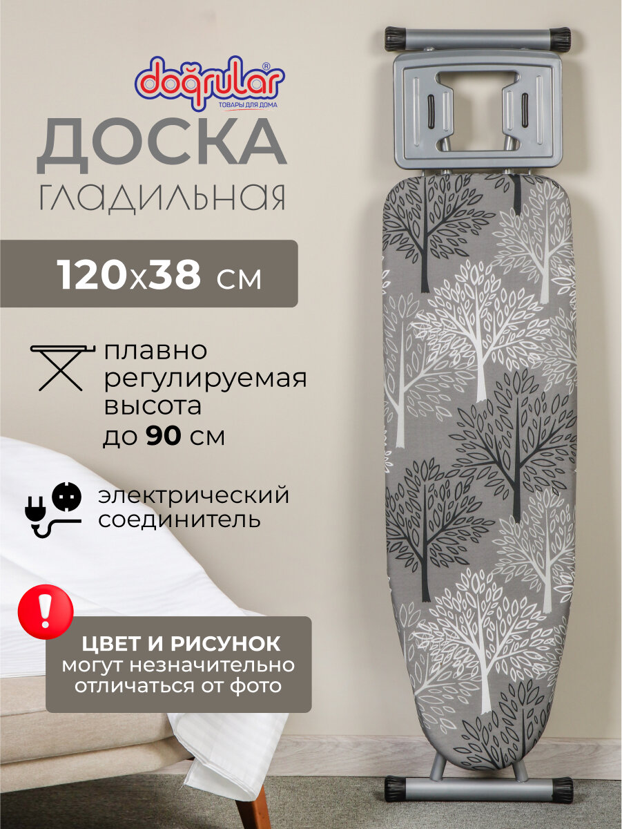 Доска гладильная Dogrular Элона 120×38 см с подставкой для утюга и розеткой, регулируемая, серая информация: