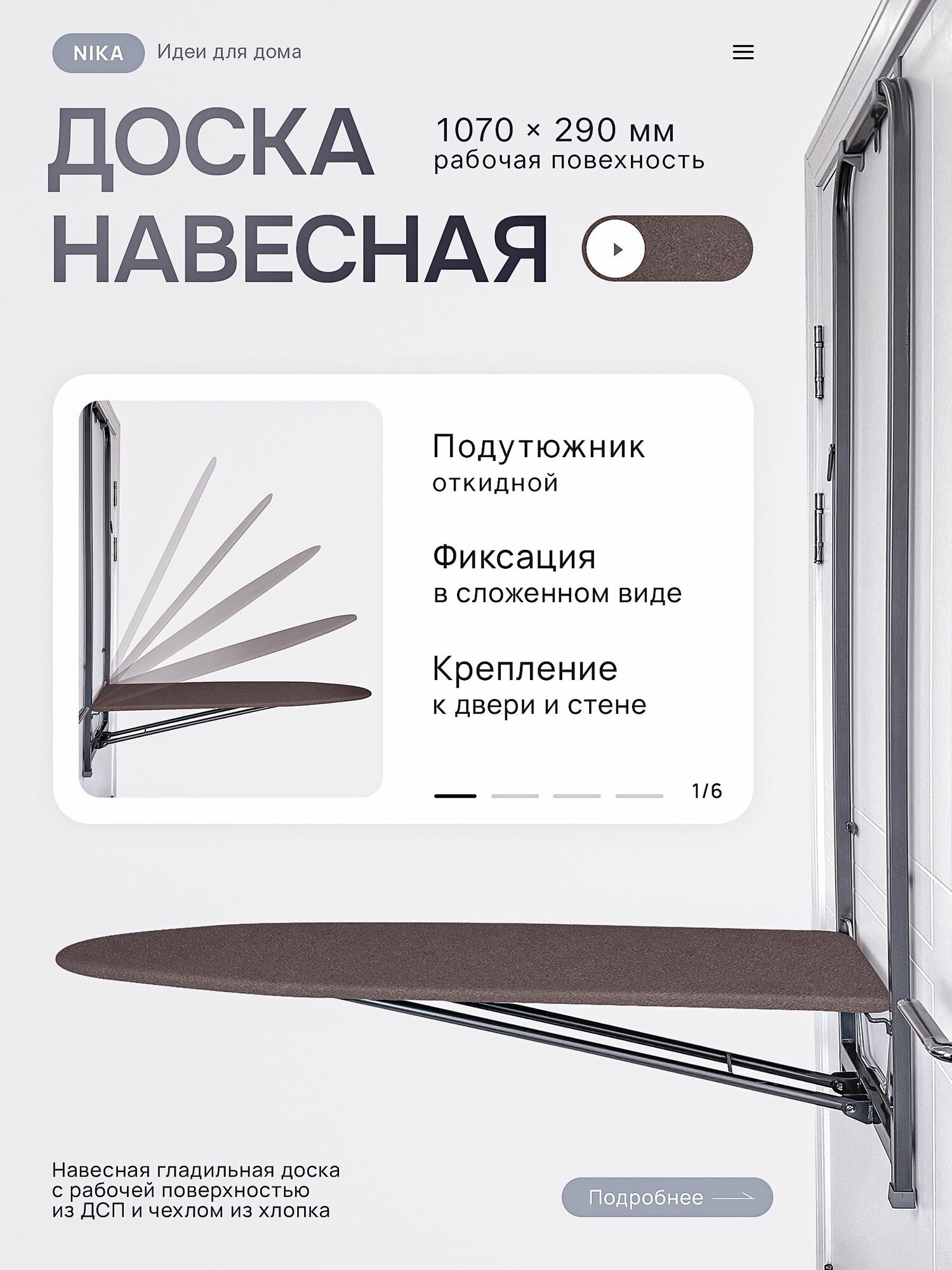 10 цен на Гладильная доска Nika, навесная, ДСП/сталь, шоколад/бежевый, 107x29 см