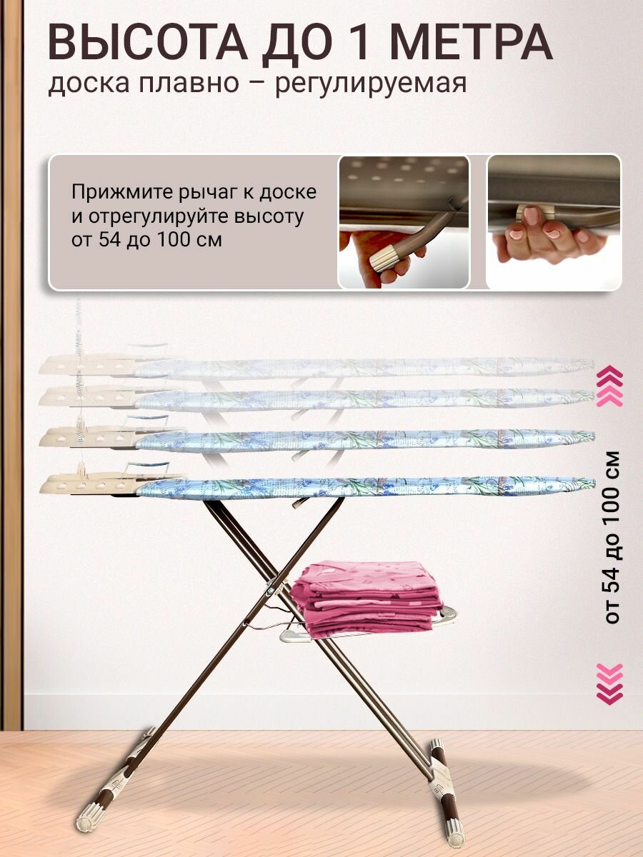 Гладильная доска Nika "Валенсия 1", напольная, металл, съемный чехол, регулировка высоты, с полкой для белья информация: