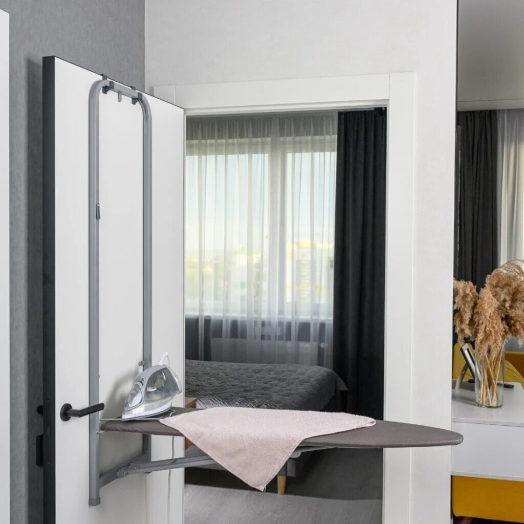 Настенная гладильная доска за зеркалом, встраиваемая в шкаф 115х40см. Дуб Сонома