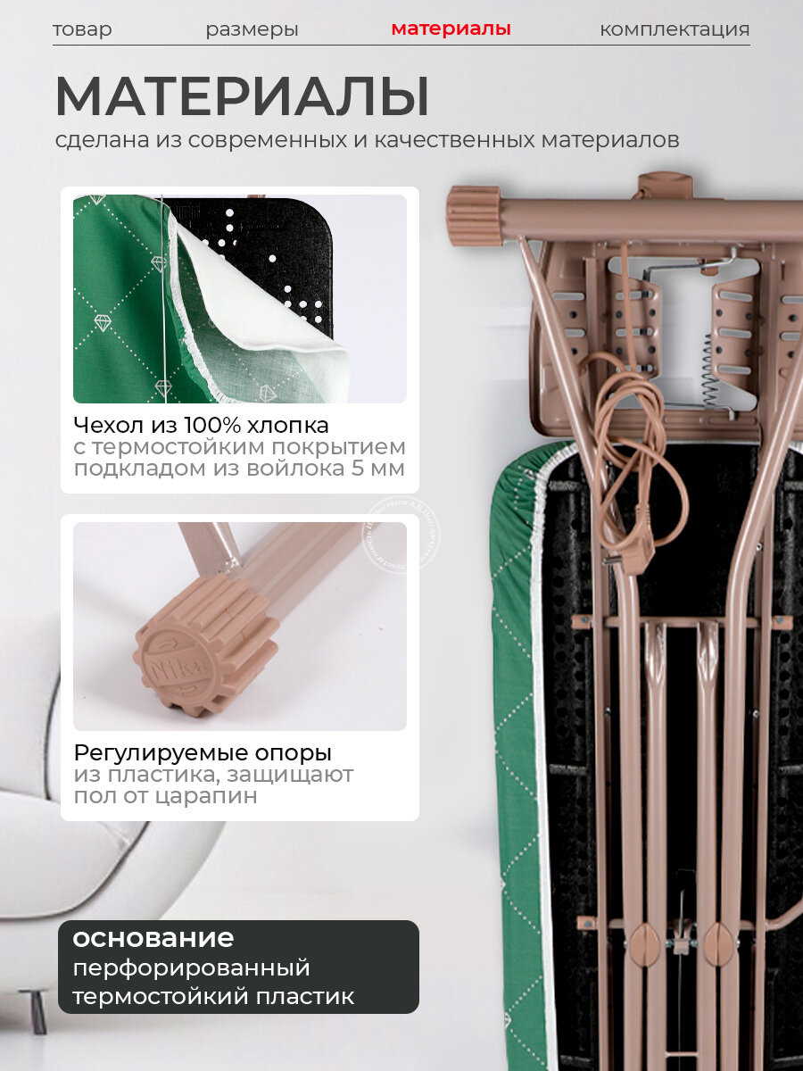 10 цен на Гладильная доска Nika на колесиках с чехлом, регулируемая по высоте