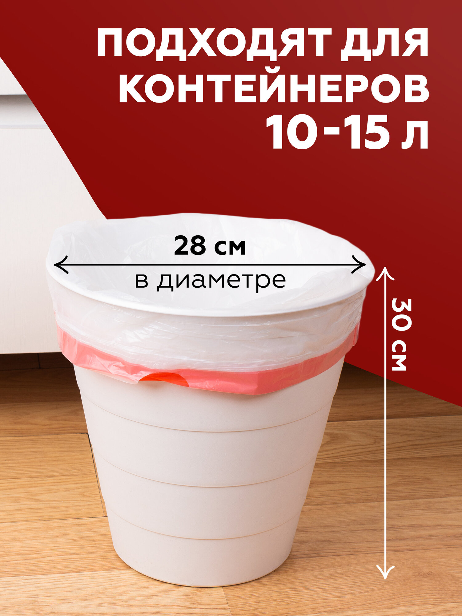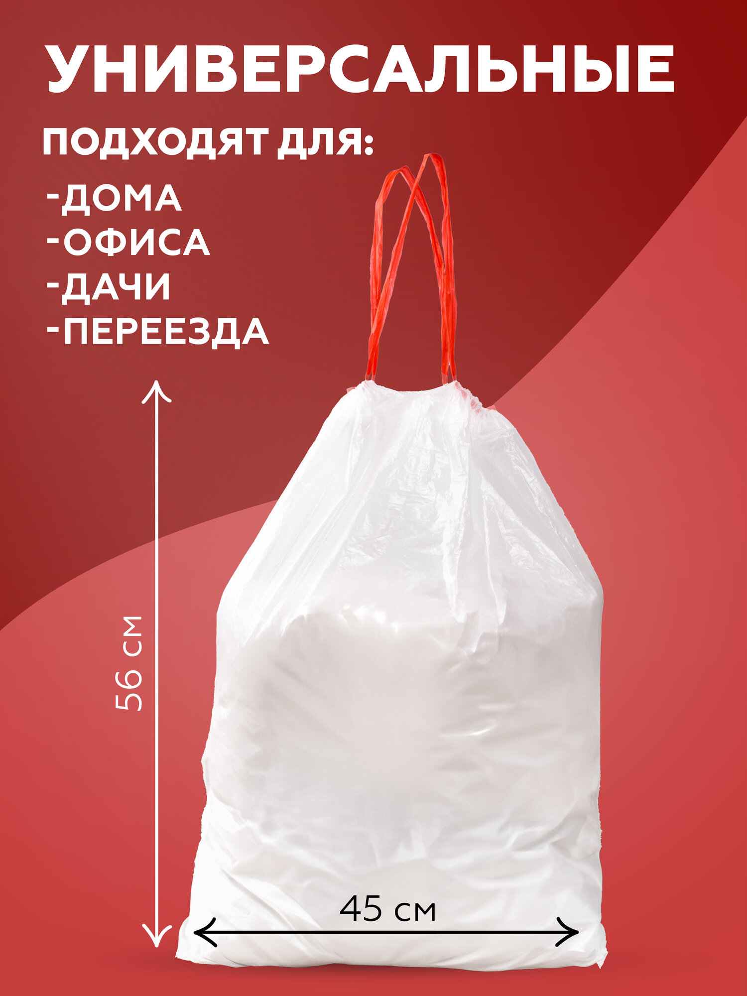 Мешки для мусора 60 л 20 шт/рул. Ecoclean , красные, 10мкм ,58х65см