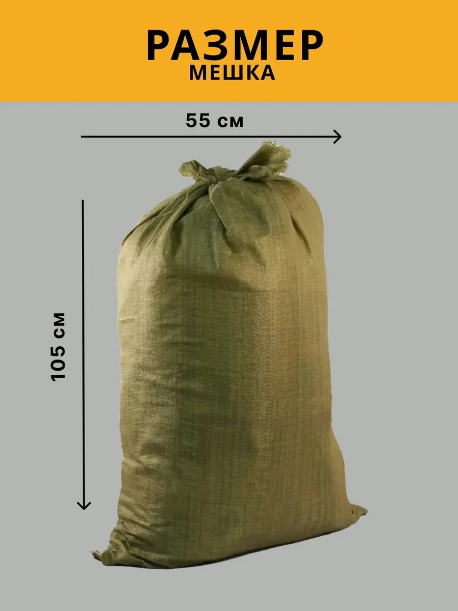 Мешки Полипропиленовые зеленые 55 x 95 см, 70 литров — для овощей, керамзита, строительного мусора, саженцев, грунта 30 штук 459 ₽
