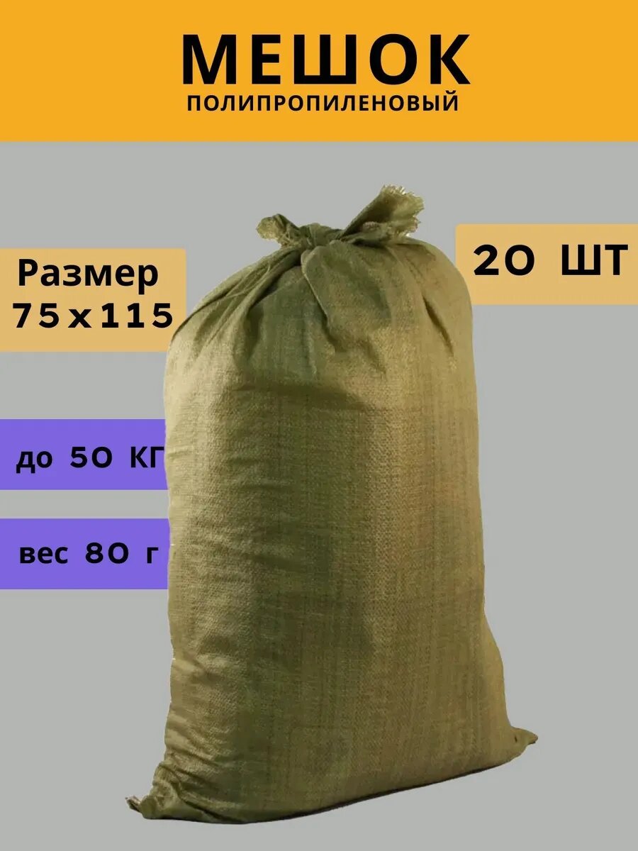 Мешки полипропиленовые для строительного мусора, 75 x 115 см, 20 шт информация:
