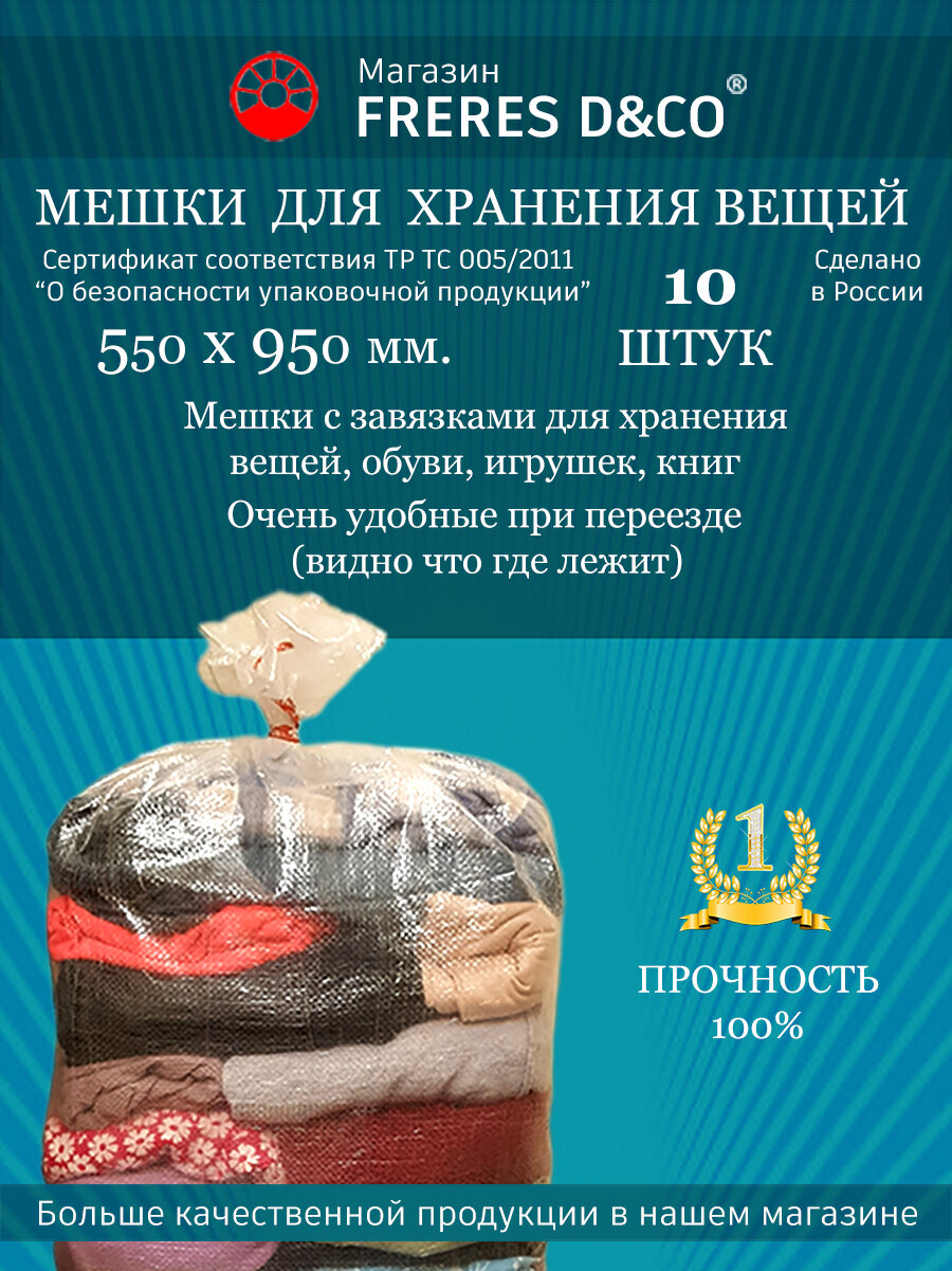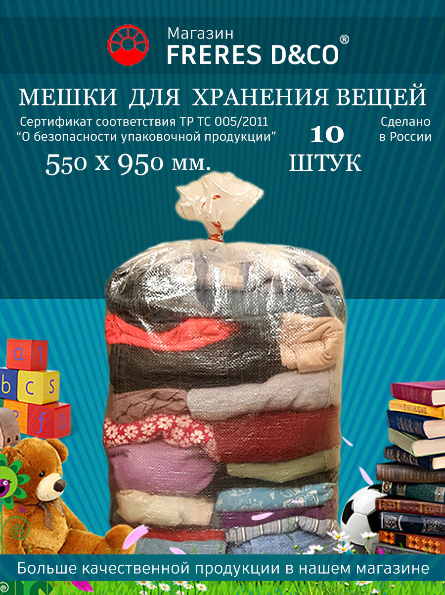 10 цен на Мешки прозрачные с завязками. Для хранения вещей, игрушек, книг. 550x950мм. 70л. 10 мешков в упаковке.