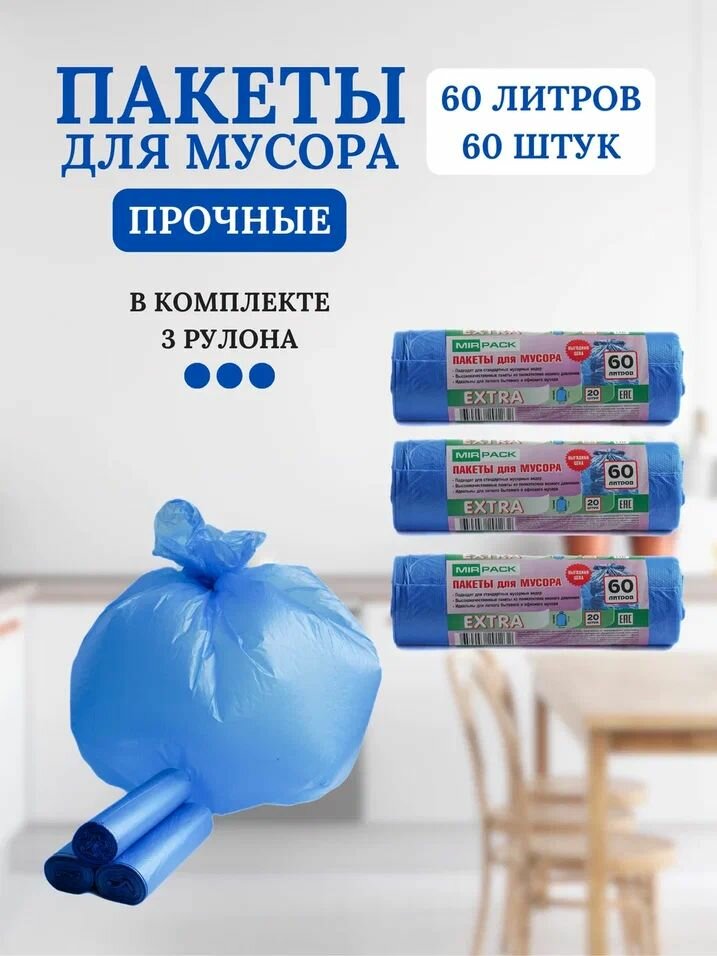 Отзывы на Мешки для мусора MirPack extra, полиэтилен, 60л, биоразлагаемые, синие.