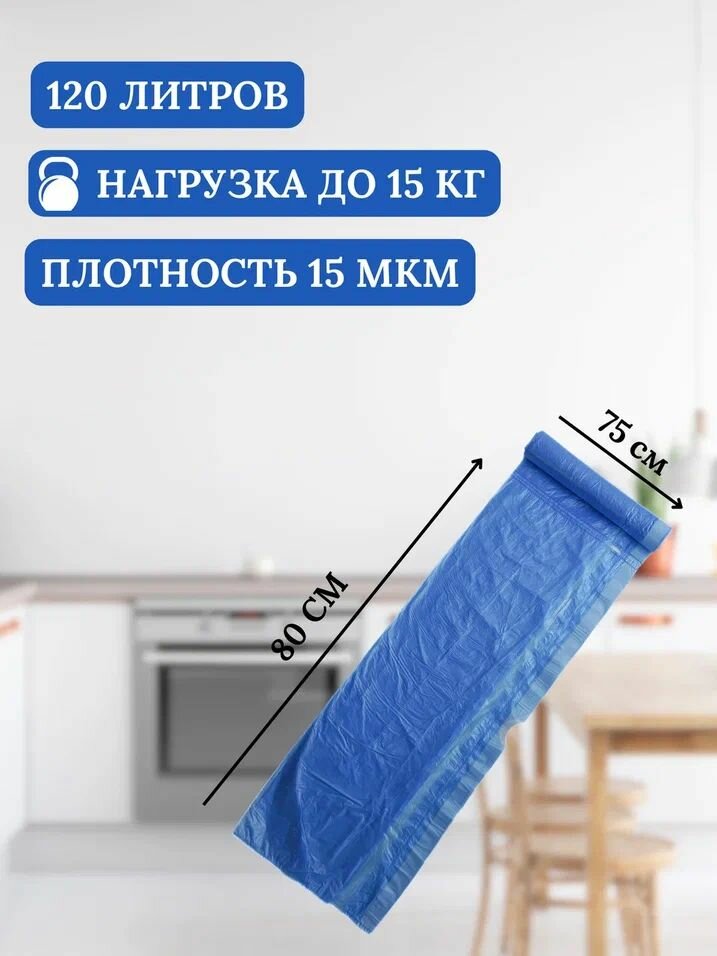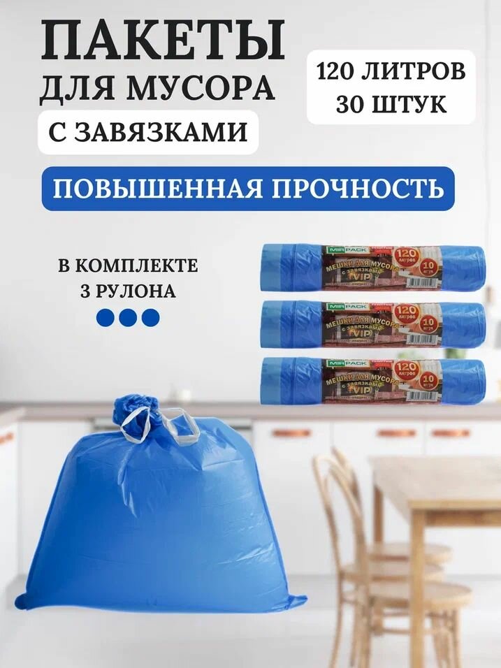 Мешки MirPack, для мусора, с завязками, 120л, синие, 3 рулона, 10 шт информация: