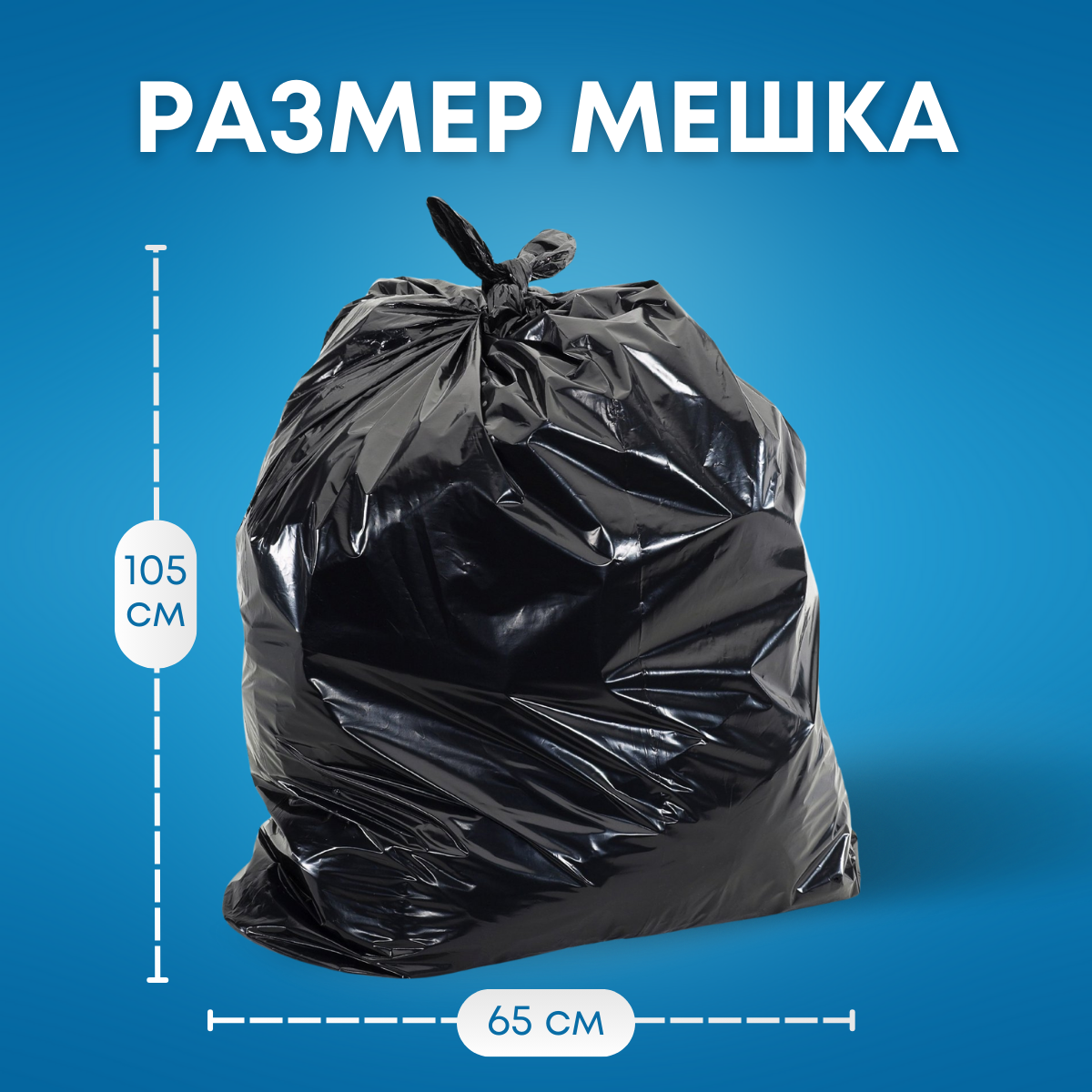 Мешки для мусора 65 л с завязками 15 шт