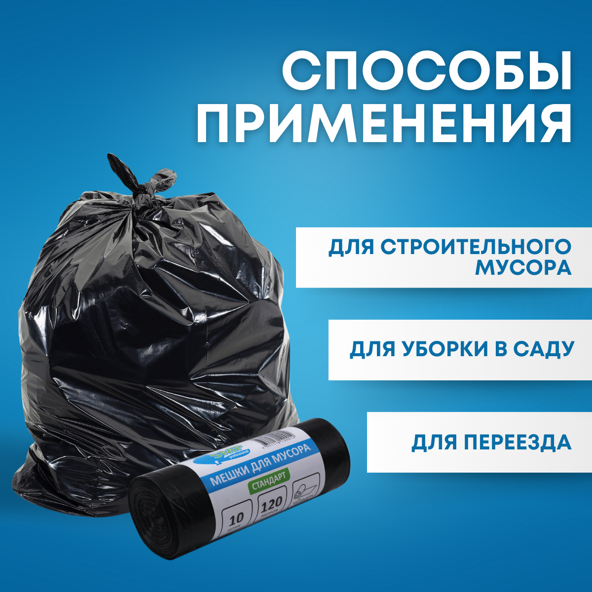 Мешки для мусора пакеты 120 литров SMP стандарт черный 30 штук информация: