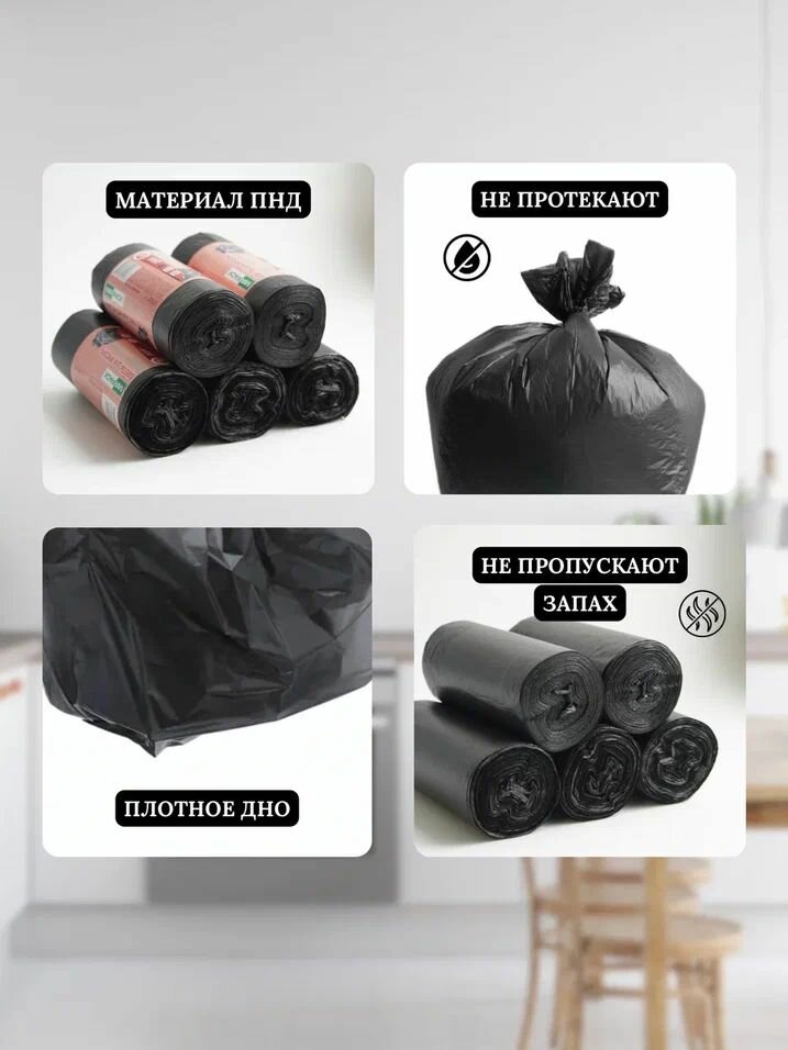 Мусорные пакеты "мандаринка" ПНД Особо прочные,60 л по 20 шт, 3 рулона, чёрные