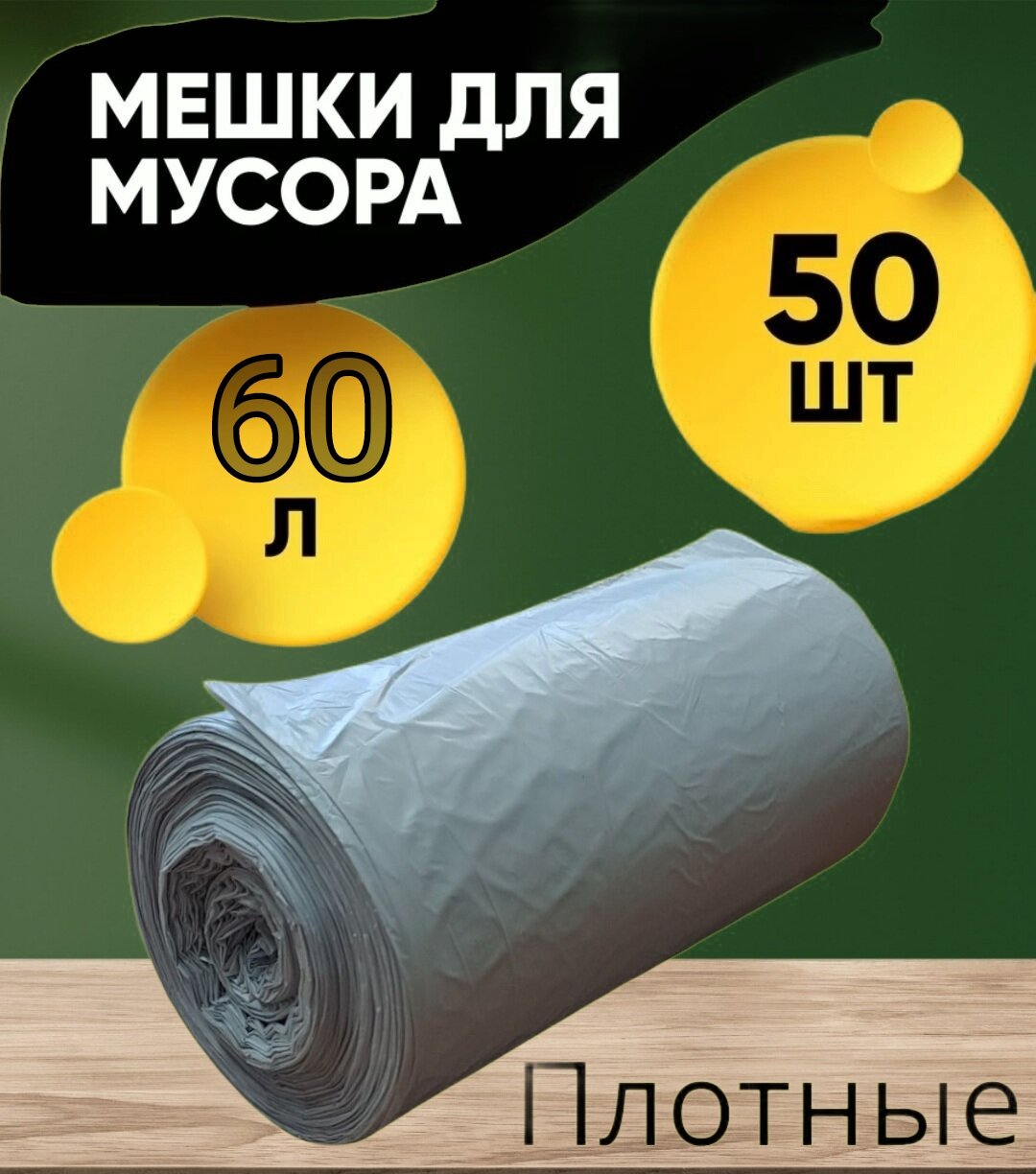 Мусорные пакеты "мандаринка" ПНД Особо прочные,60 л по 20 шт, 3 рулона, чёрные