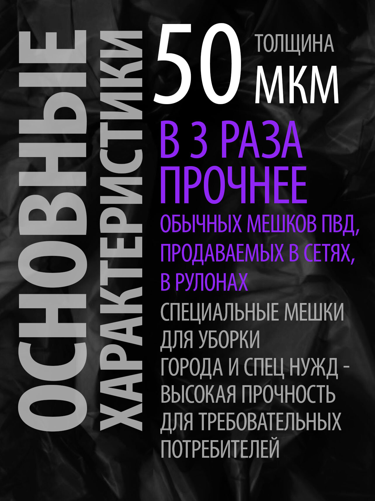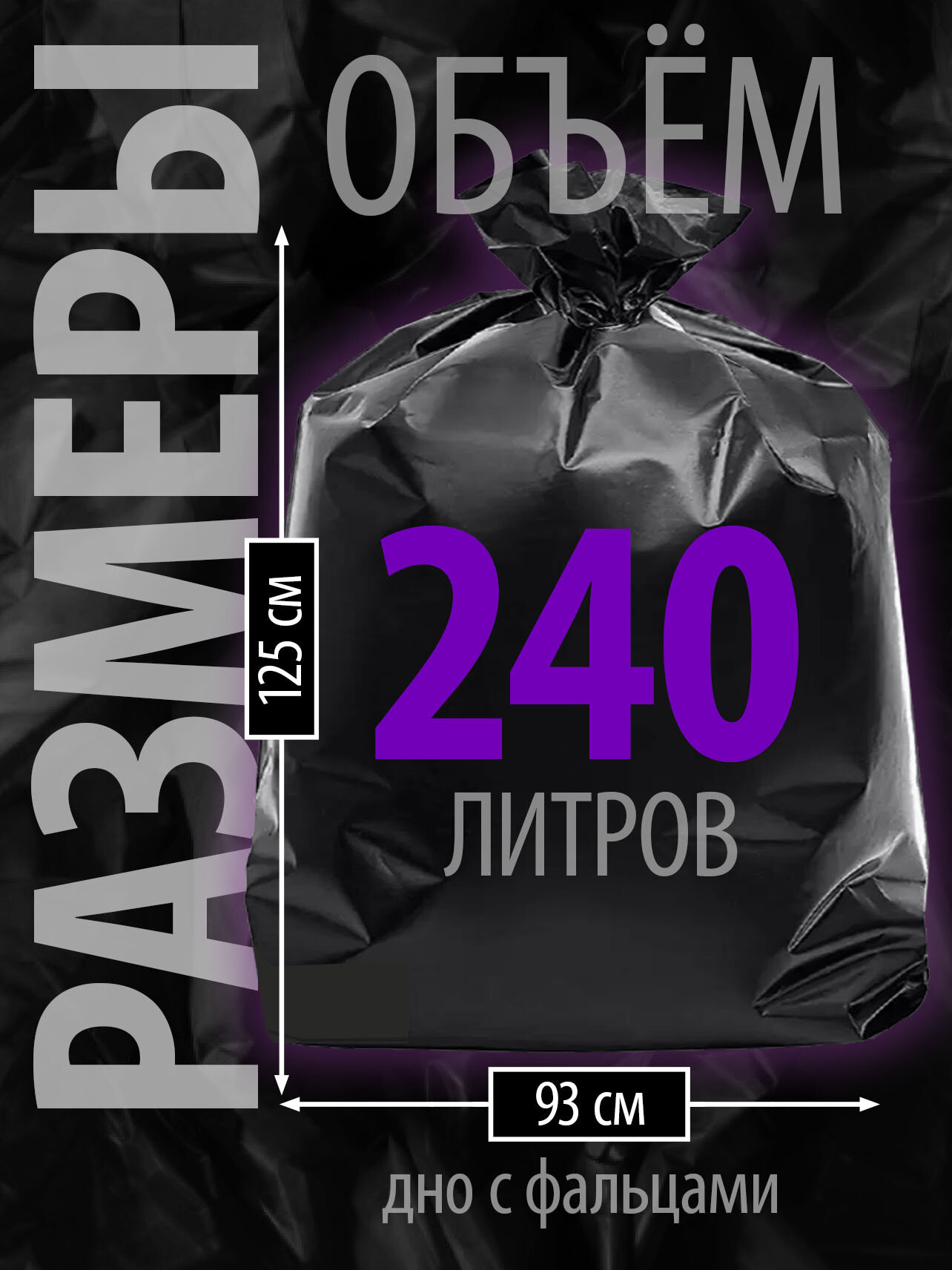Мешки для мусора прочные 240 литров, в упаковке 20 штук, ПВД, 50 мкм, размер 93х125 см, черные информация: