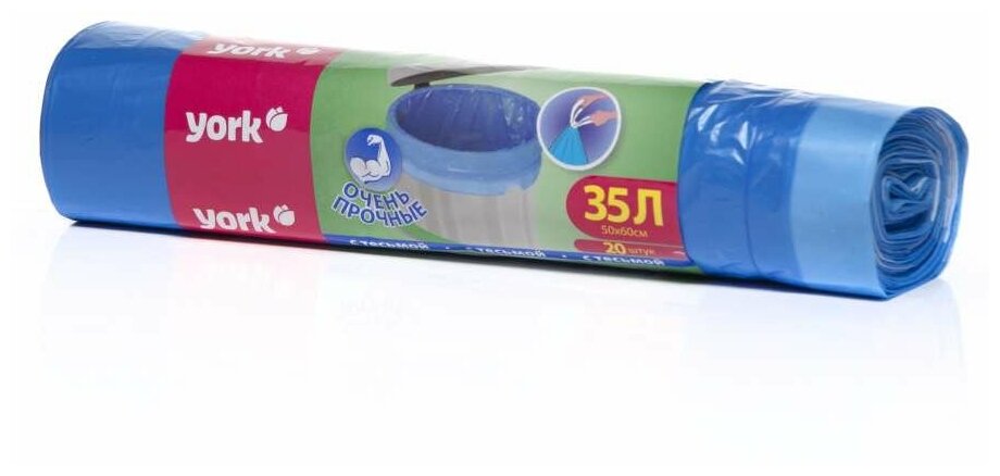 10 цен на Мешки для мусора с тесьмой York 902190 35л. 20шт, 15 мкм, синие