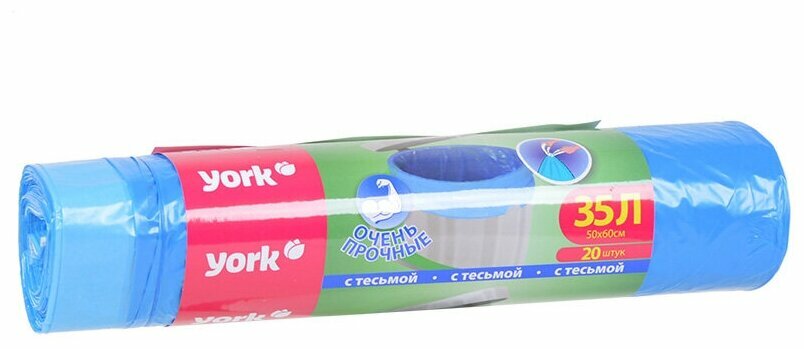 Отзывы на Мешки для мусора с тесьмой York 902190 35л. 20шт, 15 мкм, синие
