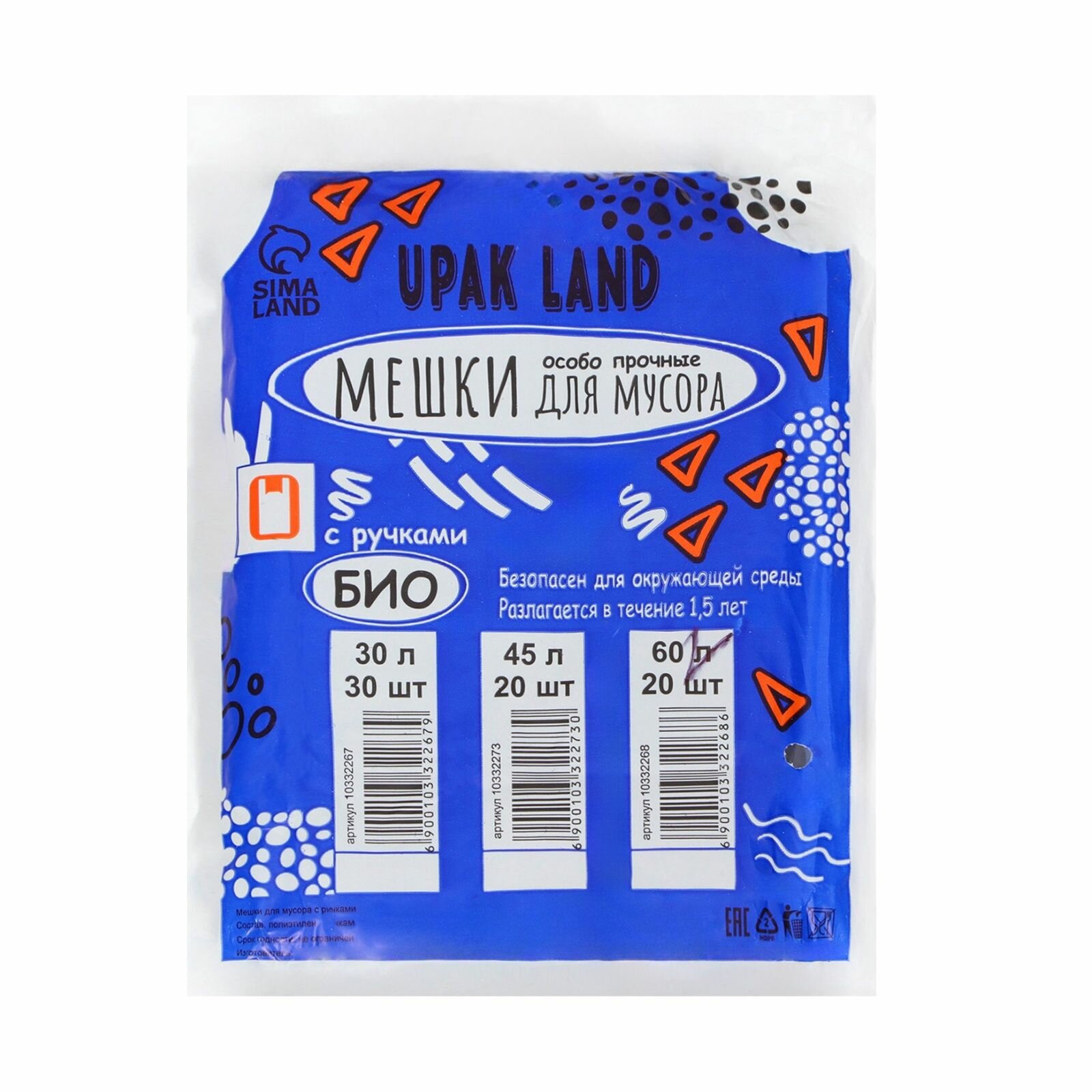 Мешки для мусора с ручками 60 л, ПНД, UPAK LAND, набор 20шт 15 мкм информация: